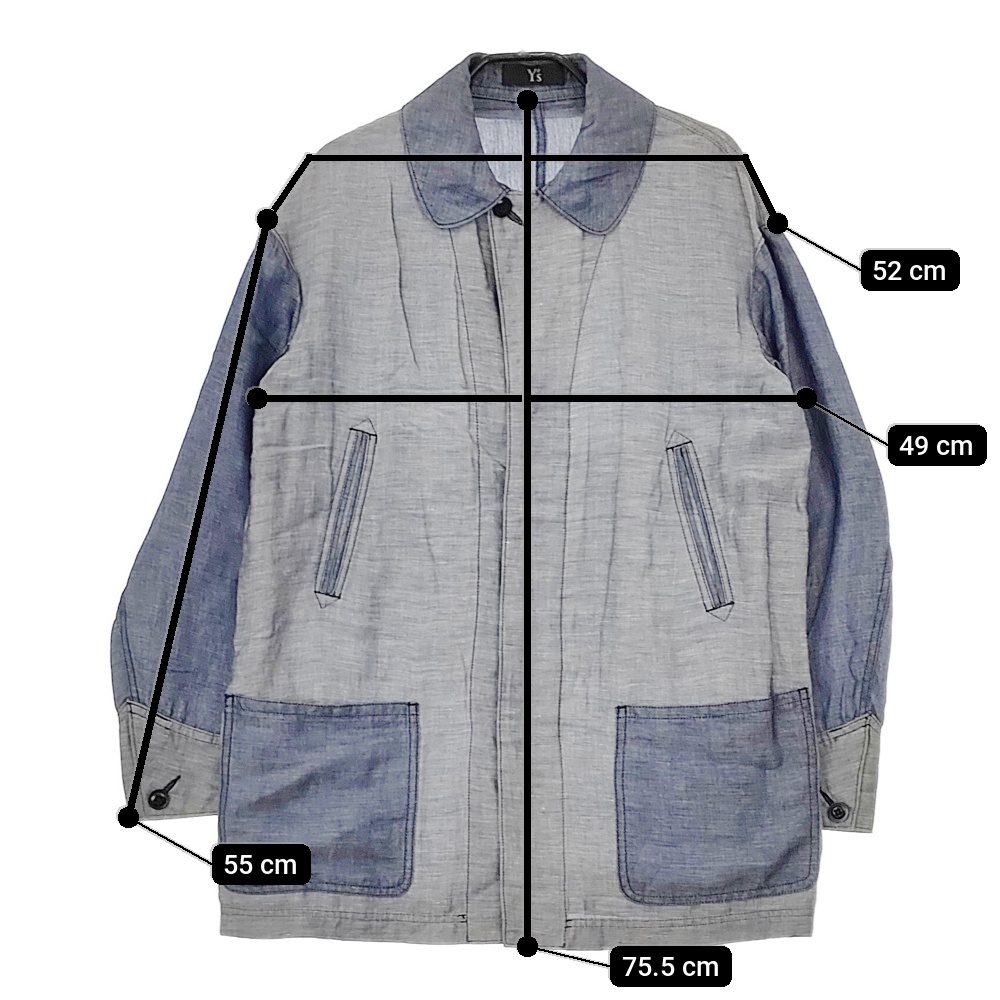 | 実寸サイズ | 肩幅:約52cm 着丈:約75.5cm 身幅:約49cm 袖丈:約55cm ※記載以外のサイズが合わないことを理由とした返品はできませんので、 記載部分以外で実寸サイズの気になる箇所があれば必ず購入前にご質問ください。 |