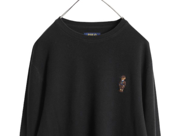 商品名 | ポロベア ポロ ラルフローレン 長袖 サーマル Tシャツ メンズ L / ロンT キャラクター 刺繍 ワッフル ワンポイント ブラック カットソー 黒 |