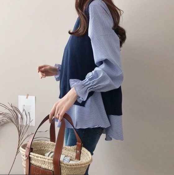 ★★★レディース トップス シャツ ベスト 2点セット パフスリーブ FX04