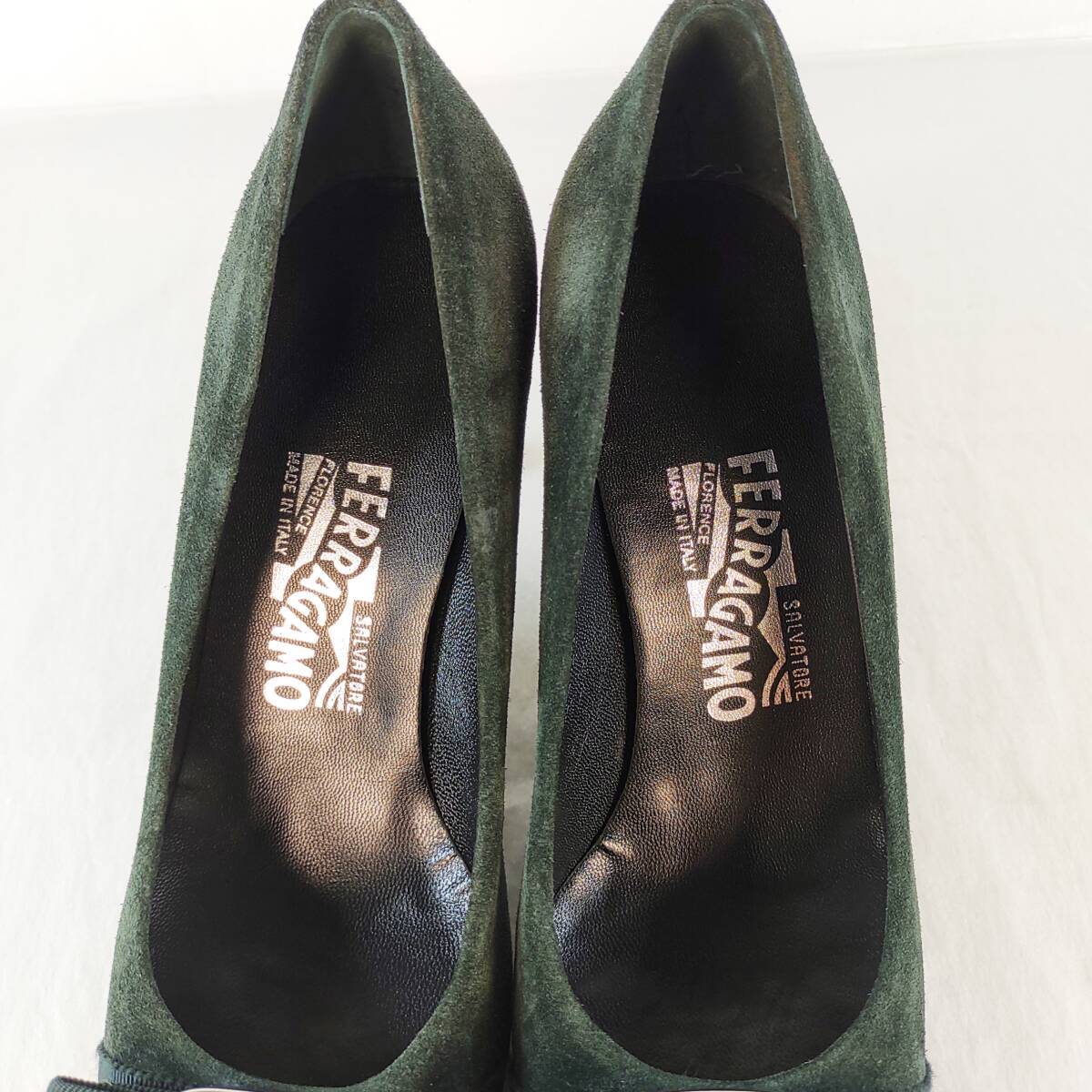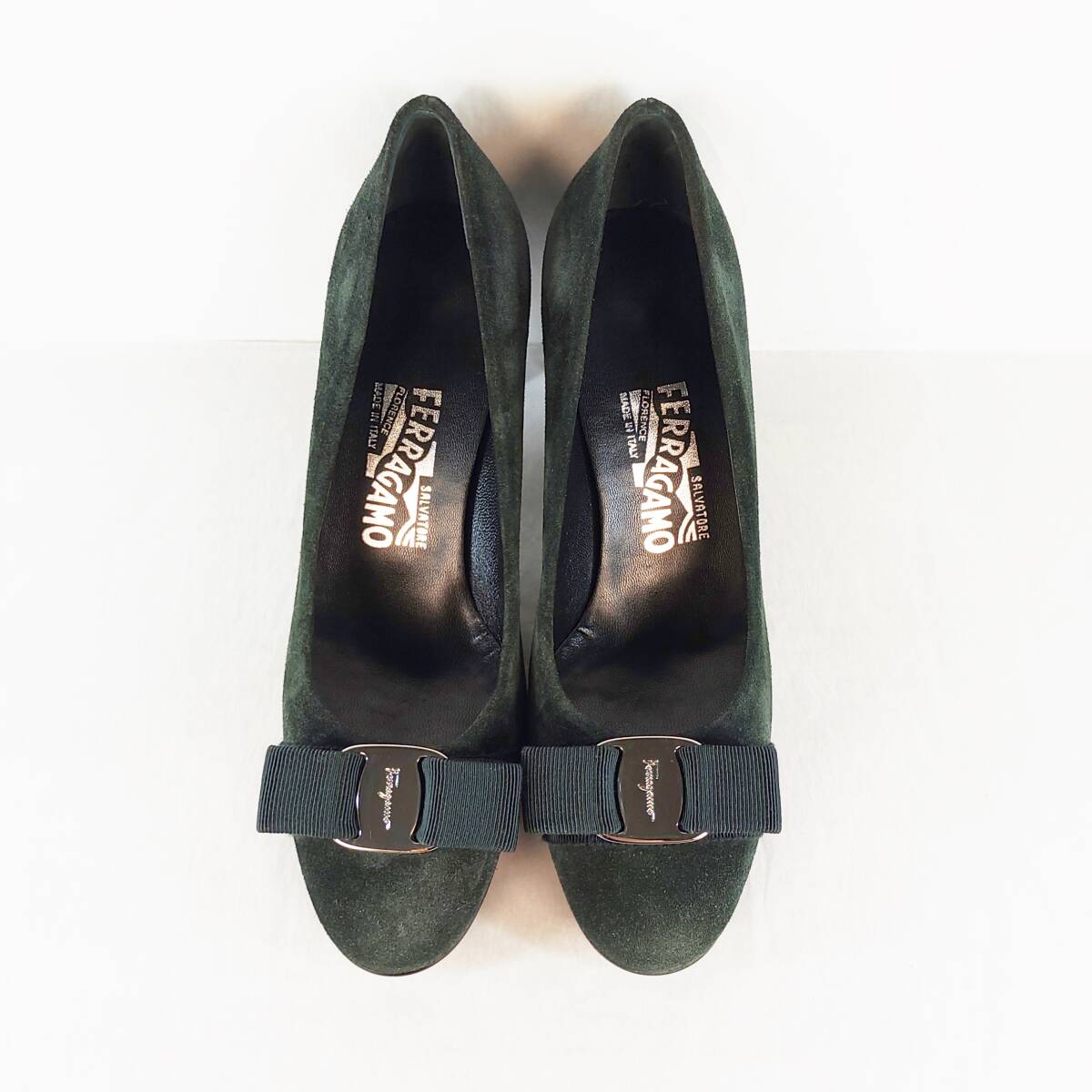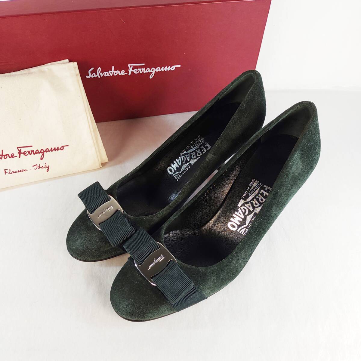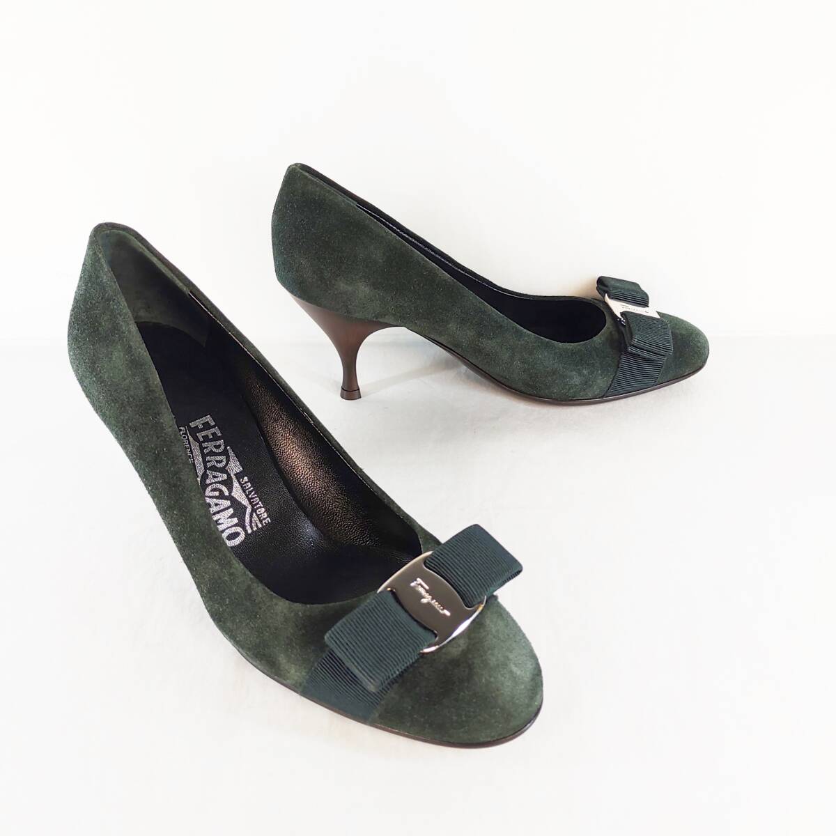 未使用品|フェラガモ|Salvatore Ferragamo|5.5C|23㎝|ヴァラリボンパンプス|緑|近年モデル|レディースシューズ|イタリア製|i1535