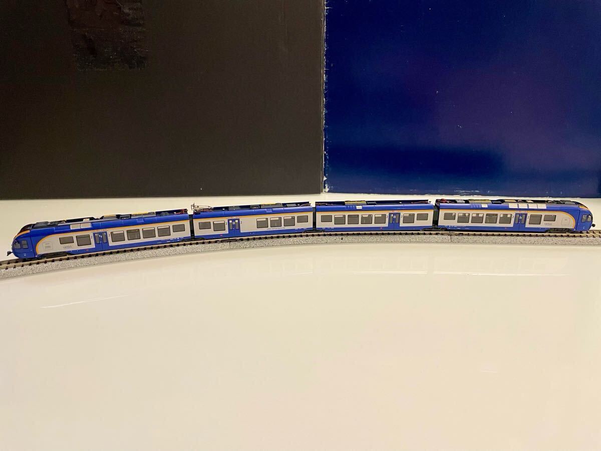 ◆ドイツ・フランクフルト模型専門店予約購入後、別の段ボール箱に入れて保管しましたが、忙しく忘れた存在に…コレクション整理で出品します。ドイツ鉄道Electirc Unit FLIRT CANTUS Era 5 の動力ユニット(M)は購入時と出品時にテスト走行し、スムーズに走行ました。先頭車2両のヘッドライト&テールライトと室内灯点灯も確認しました。今では絶品となったドイツ鉄道Electirc Unit FLIRT CANTUS Era 5 (進行ライト&室内灯標準装備=LED照明)4両編成がすぐに楽しめますので、是非ご入札お願いします。