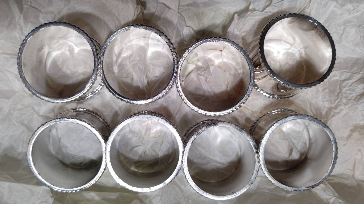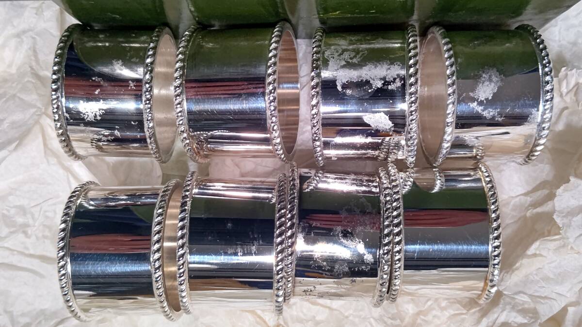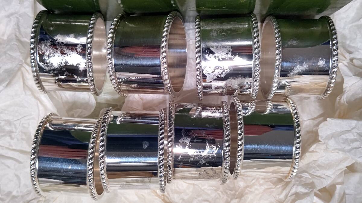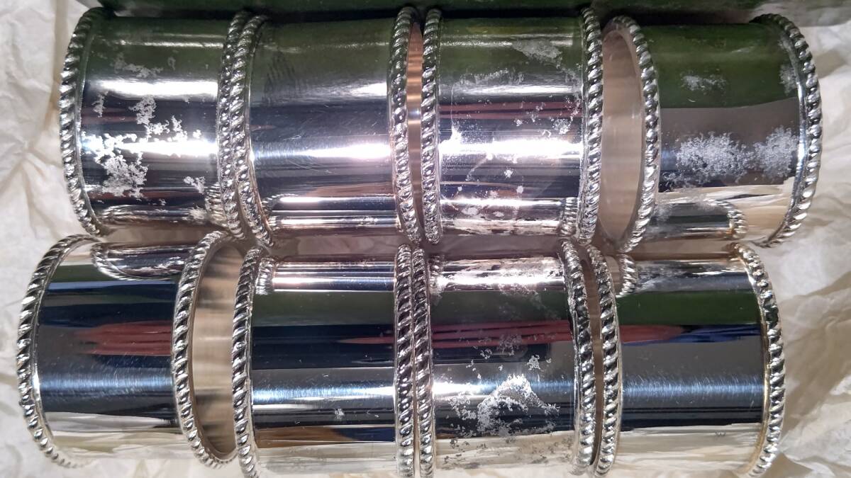 331-1 ヴィンテージ 英国 ハロッズ シルバープレート ナプキンリング 8個セット(直径4.4㎝幅3㎝合計重量383g)箱入り