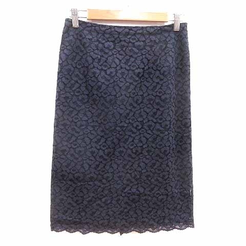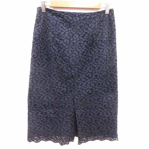 ナチュラルビューティーベーシック NATURAL BEAUTY BASIC タイトスカート ミモレ ロング 総レース M 紺 ネイビー /YK レディース