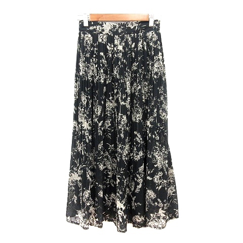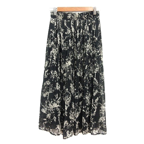 晴れ色 hareiro プリーツスカート ロング 総柄 M 黒 ブラック ベージュ /MN レディース