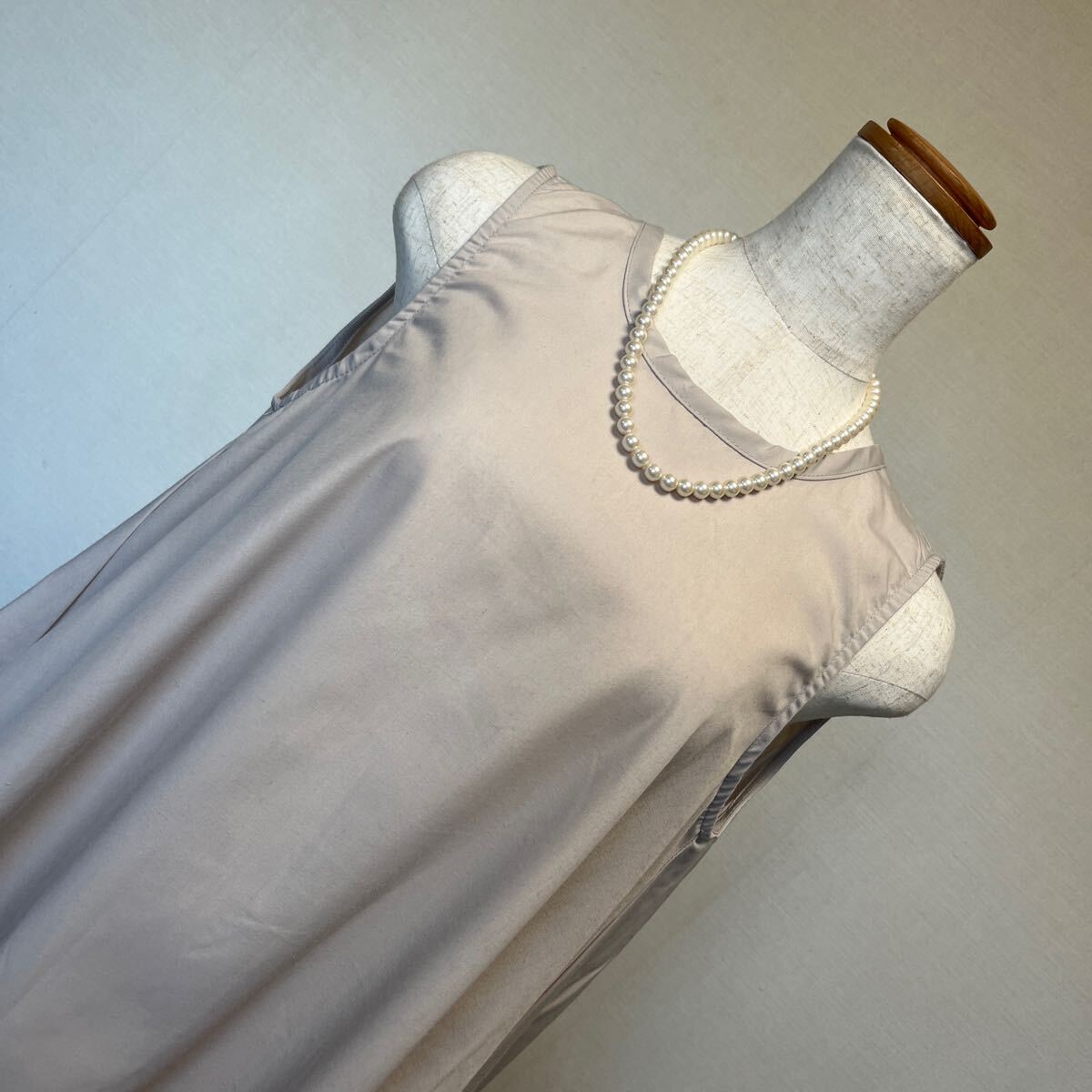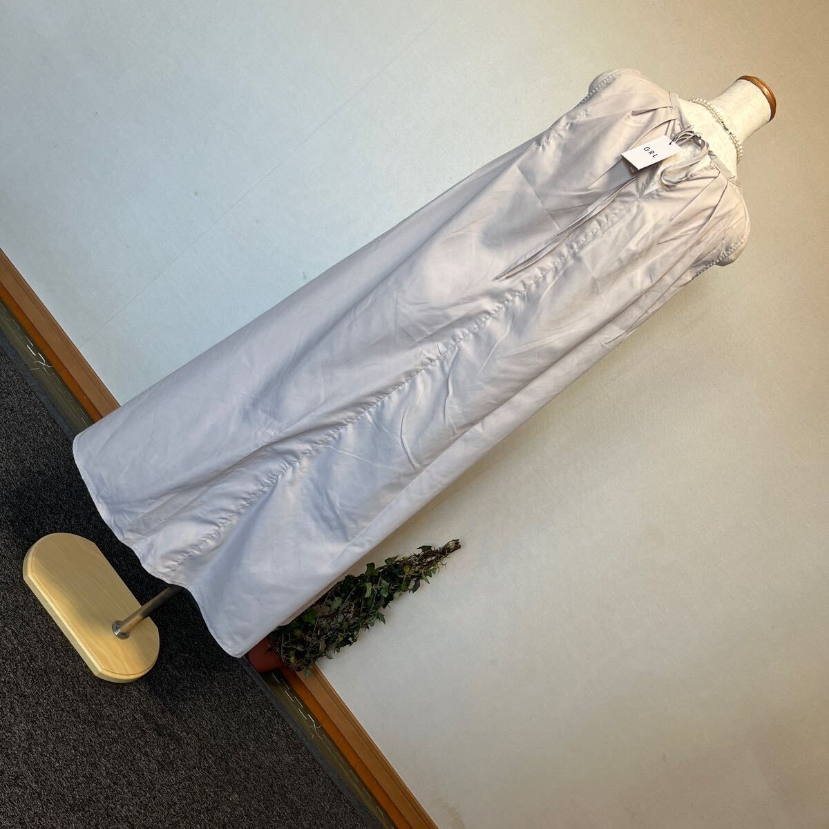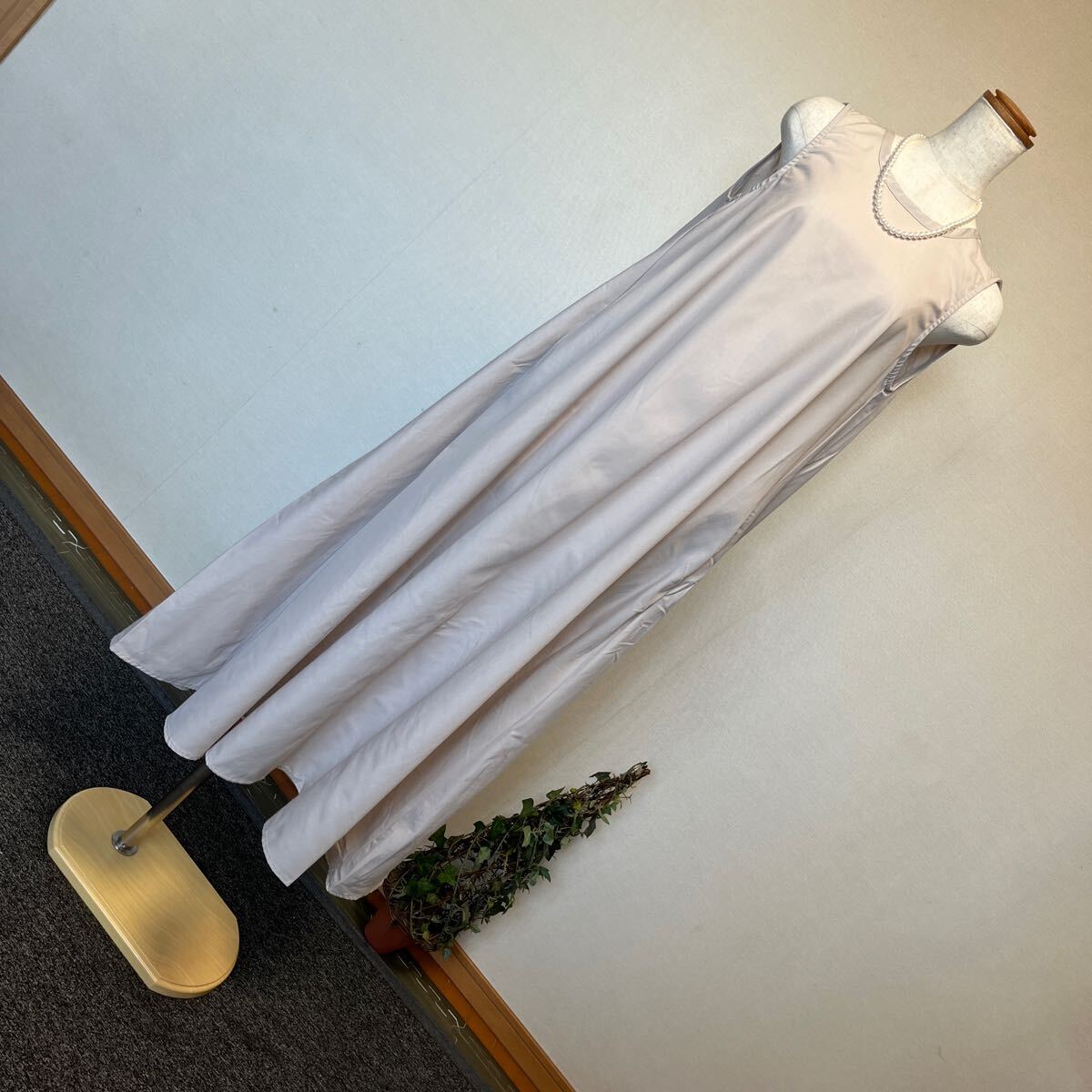 新品の歩くたびにふんわり広がるフレアデザインのワンピース。 ノースリーブとバックリボンで女性らしさを演出。 長めの丈で、カジュアルにもシックにも着られる一枚。 ハリのある生地で着心地も抜群。 ★ポケット付です。 ネックレスはついていません。