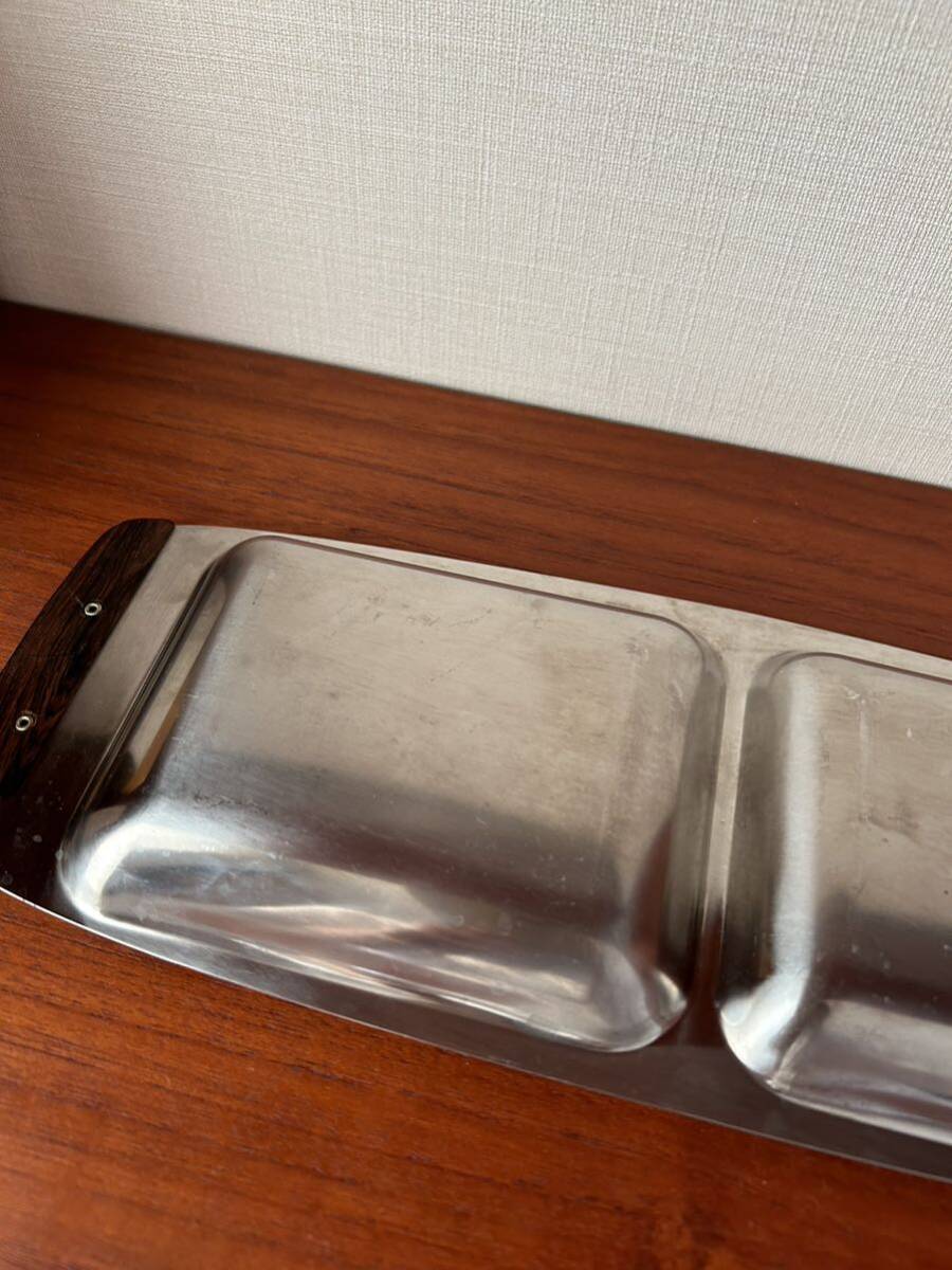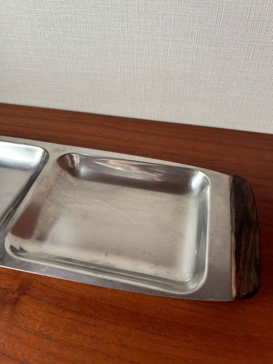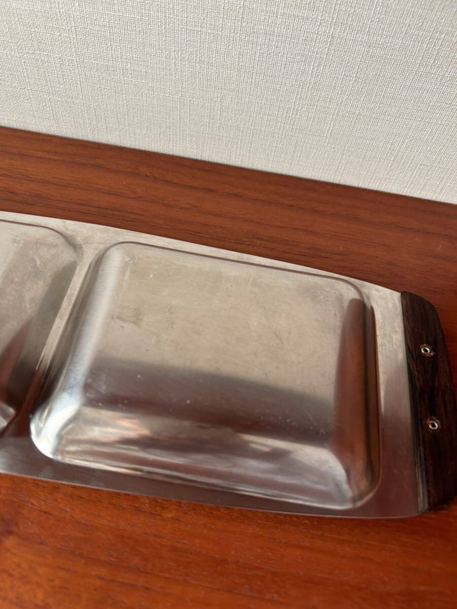 デンマークのヴィンテージのステンレストレイです。雰囲気あるトレイで鍵やアクセサリーの置き場として、またおつまみを載せるプレートとしていかがでしょうか。ステンレス18-8の記載があります。