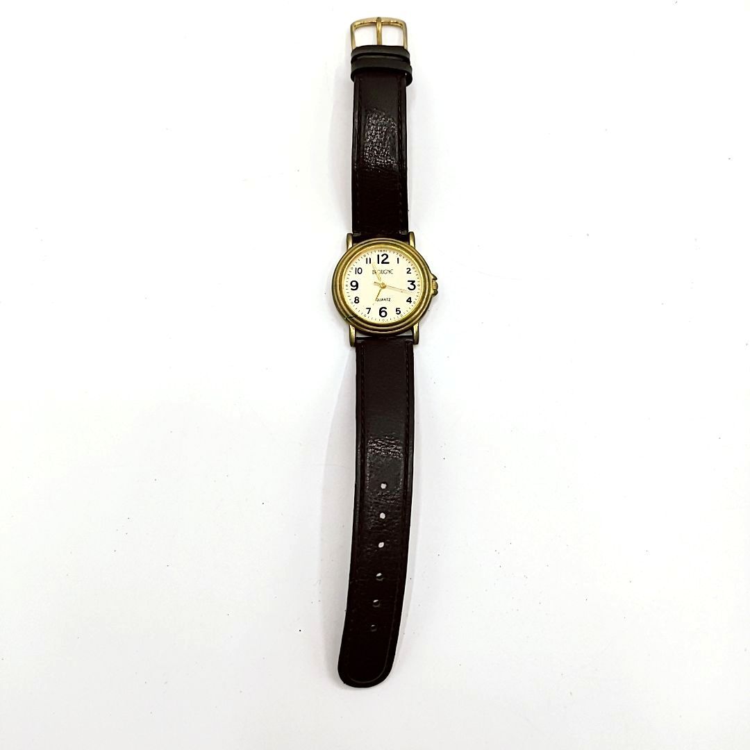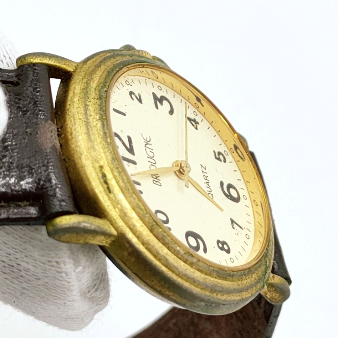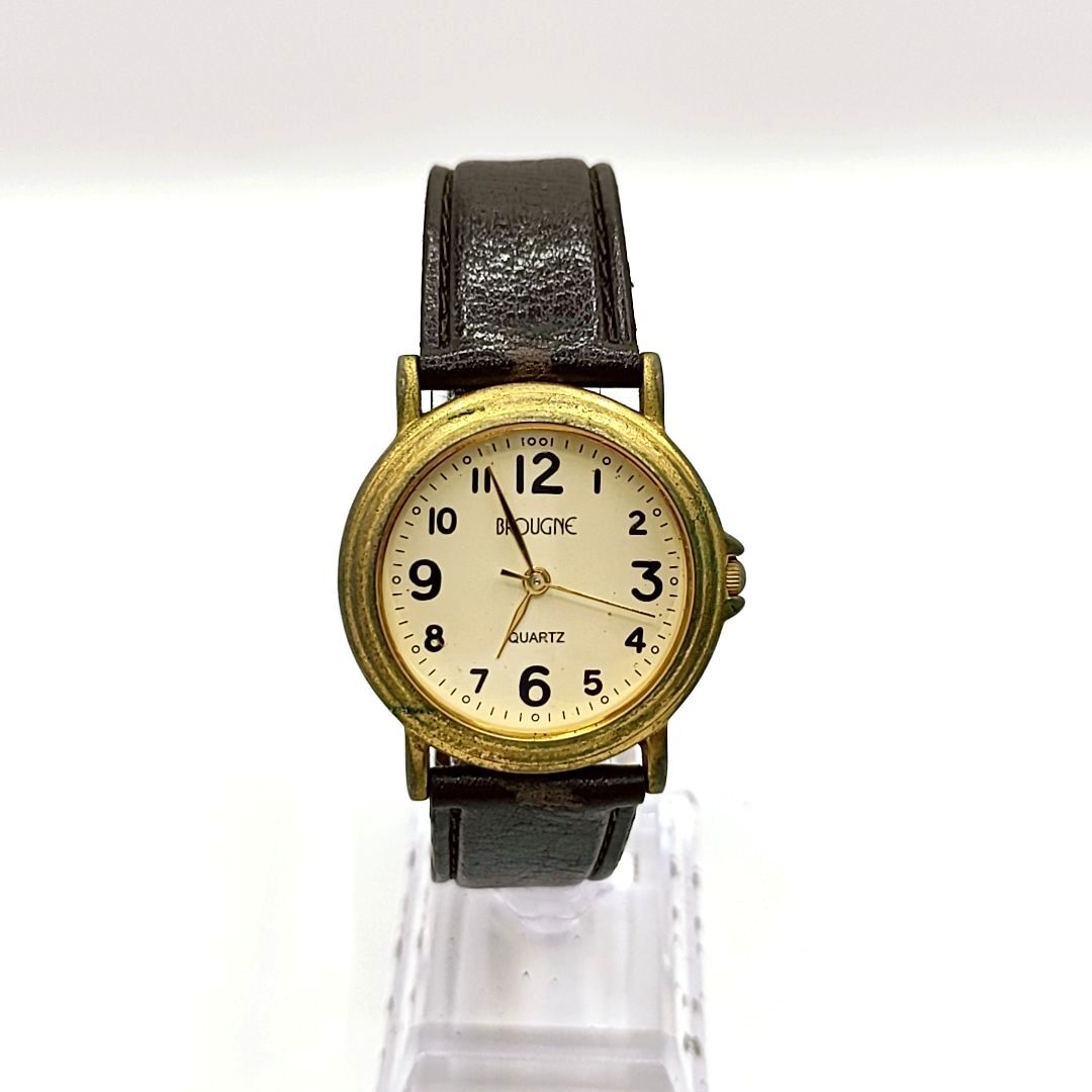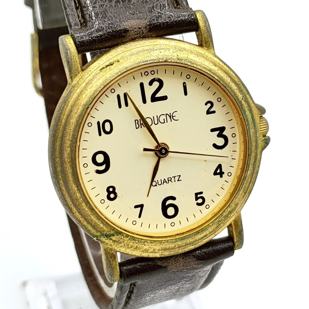 【電池切れ】BROUGNE クォーツ 腕時計 アイボリー文字盤 ラウンド ケースゴールド レザーベルト ボーイズサイズ