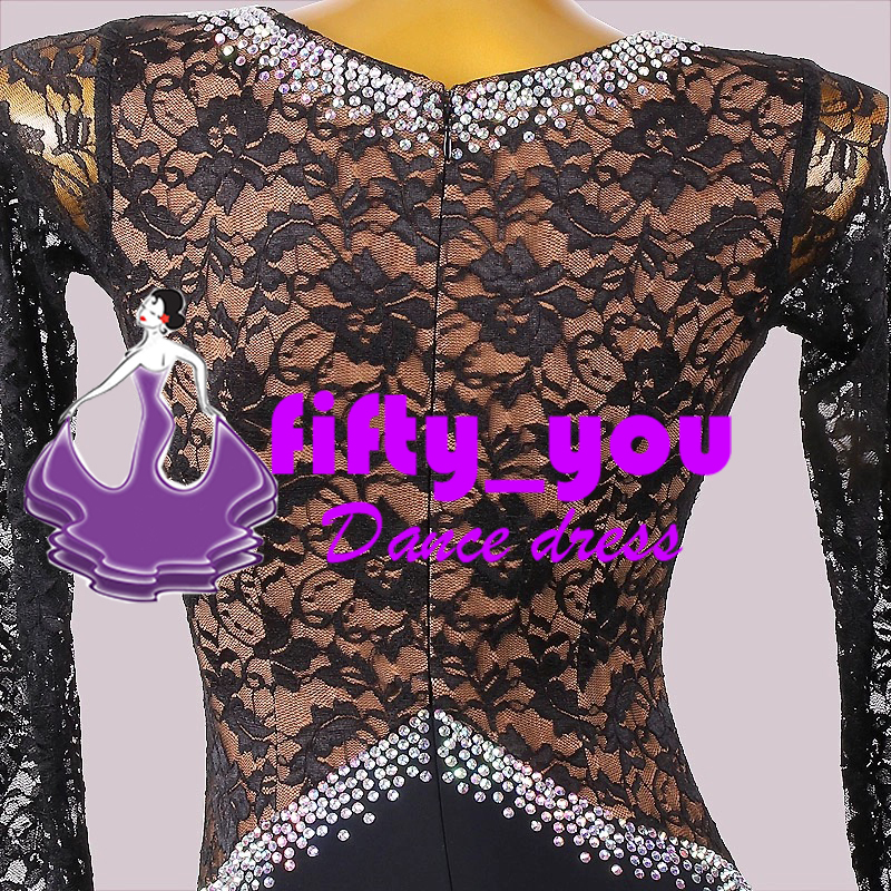 新品fifty_you 社交ダンスドレス セミオーダー モダン競技スタンダードドレス 練習用ドレス 素敵レース柄 ストーン飾り ブラック