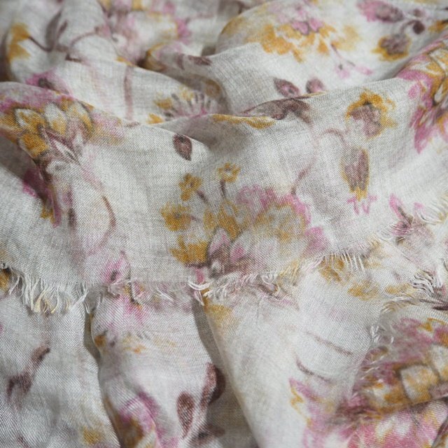 K9448f4 ■BARBA バルバ■ 花柄 モダール ロングストール ベージュ / サマーストール フラワー柄 イタリア製 メンズ 春夏