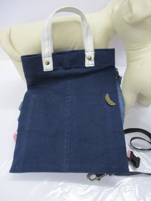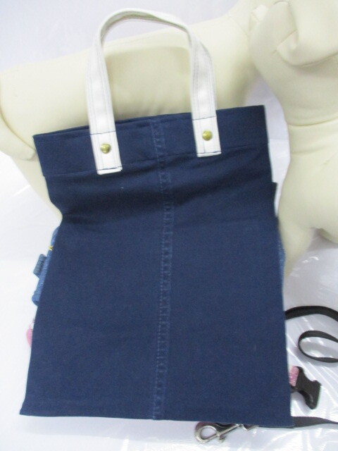 多用途 ペット 犬 お散歩 手さげ バック ジーンズ 生地 インディゴ 紺 系色 オリジナル ハンドメイド 新品 未使用 写真詳細参照 動物寄付対象品 OSA-23