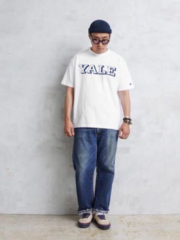 製品洗い加工により、着用の当初から着慣れた感触が味わえます。「YALE(イェール大学)」のプリントは、左胸に大きな「Y」と「YALE」を組み合わせて入れたデザインと、胸の中心に立体の「YALE」を大きく入れたデザインの2タイプ。ホワイトのボディには染み込みプリント、ネイビーのボディにはラバープリントを使用しています。