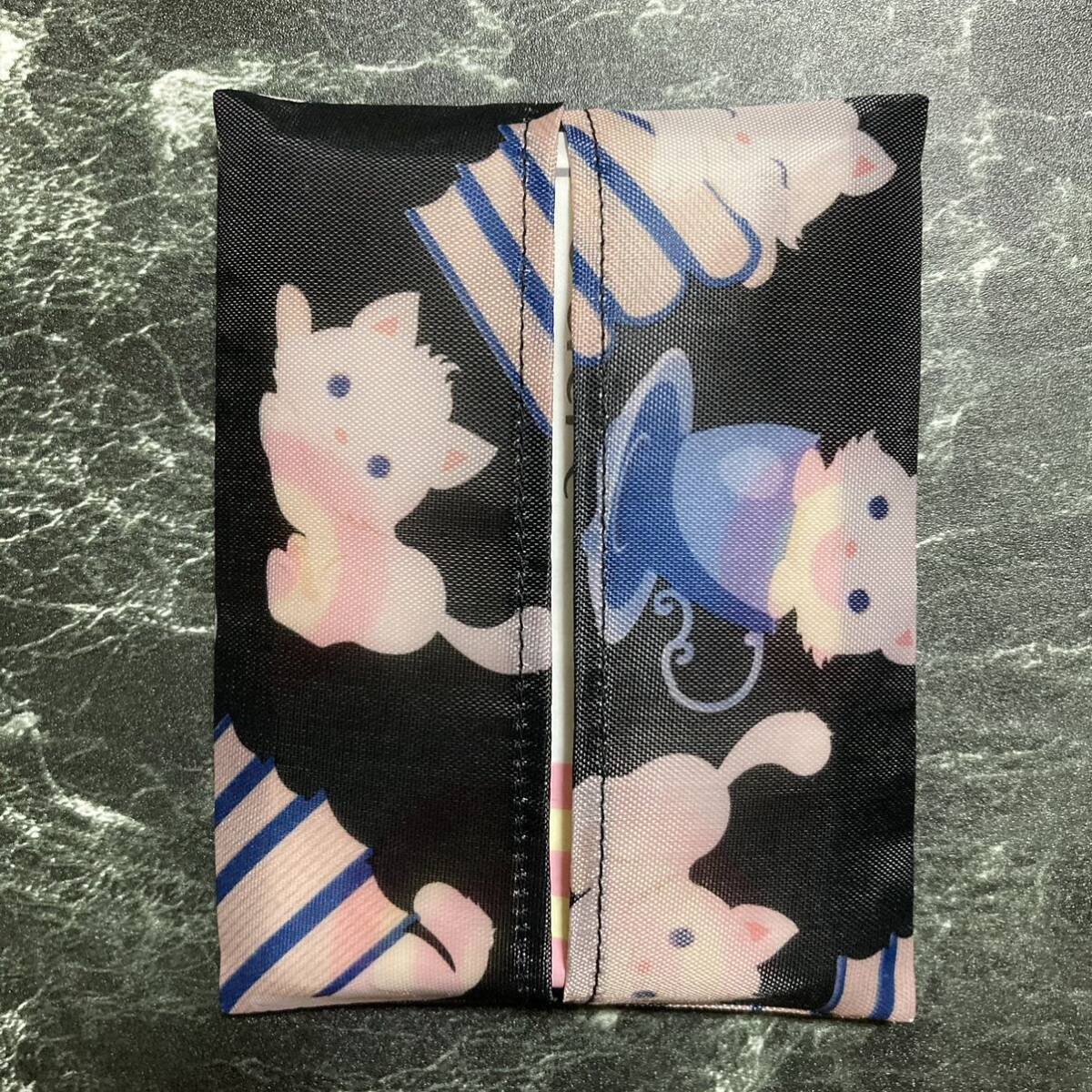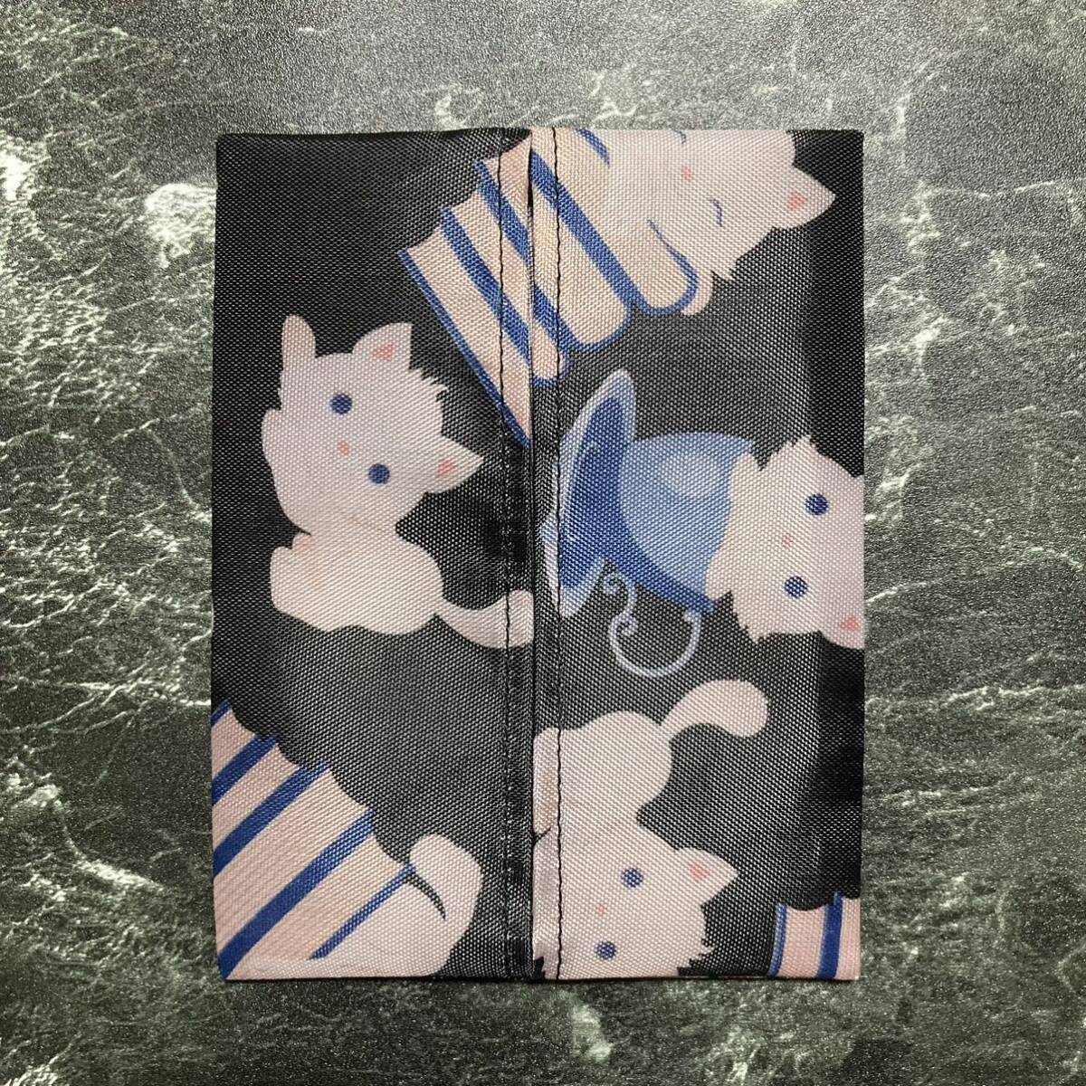 ハンドメイド カップネコ 猫柄 黒系 ポケットティッシュケース 送料無料