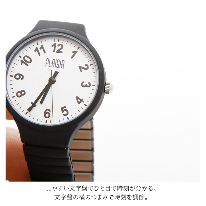 商品説明 | ・肌に優しいニッケルフリー素材のジャバラウォッチが登場! ・伸び縮みのするジャバラタイプで簡単装着。 ・見やすい文字盤でひと目で時刻が分かる。文字盤の横のつまみで時刻を調節。 ・マットな仕上がりで落ち着いた印象なので、色々なコーディネートに合わせやすい♪ ※すべての方に金属アレルギー反応が出ないことを保証するものではありません。 |