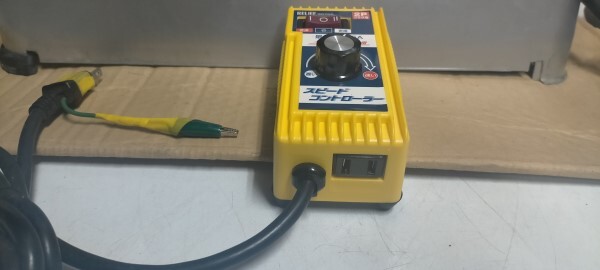 通電し、切断機の刃の回転、ならびにスピードコントローラーを繋いで、回転速度の調整等、簡単な動作確認を行いました。