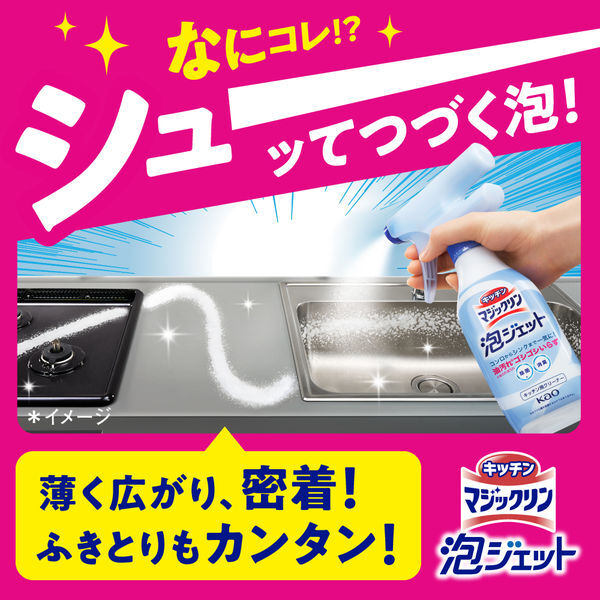 ○シューーーーッてつづく泡が、薄く広がり、密着。ふきとりもカンタン。