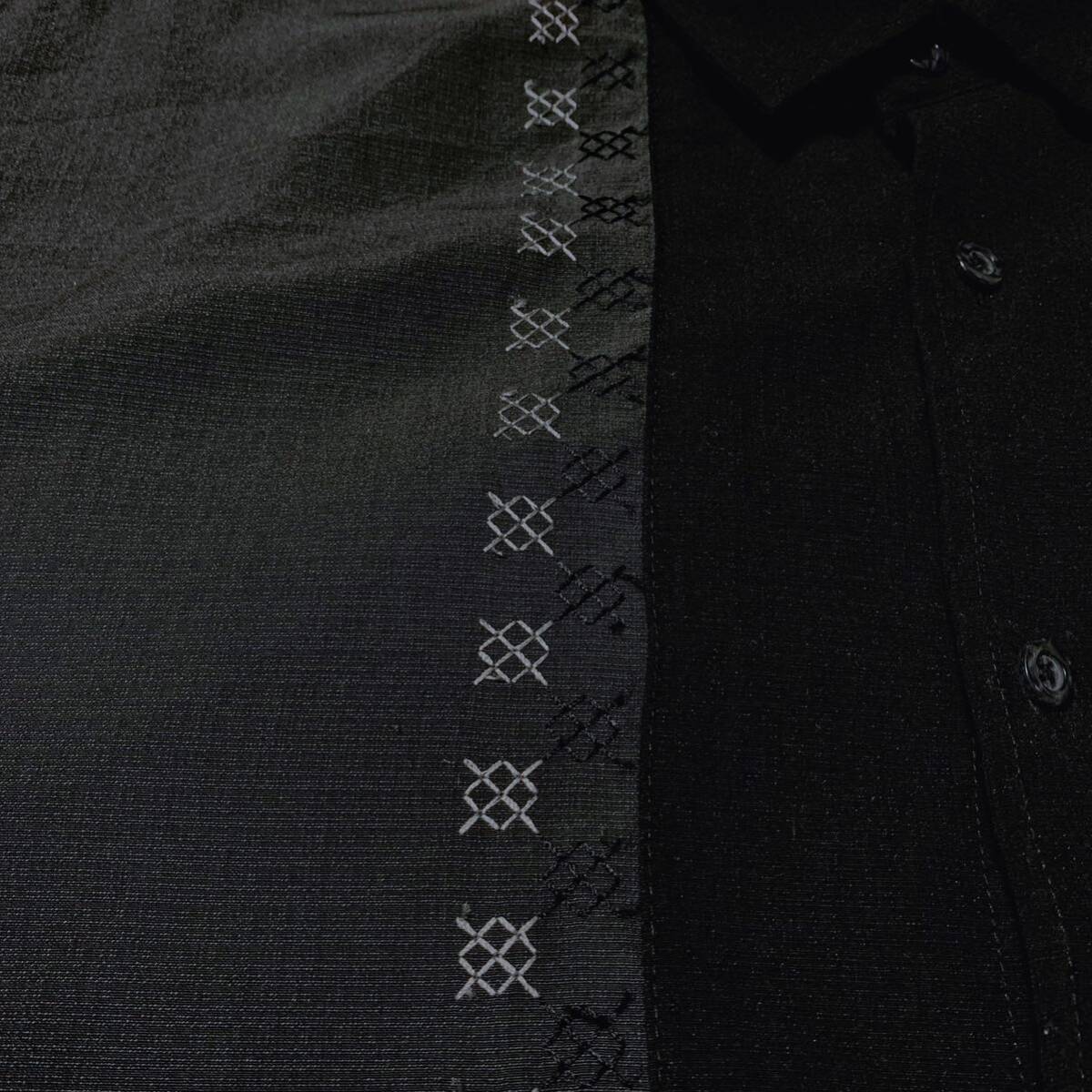 また、フロントに施された柄のような刺繍がロカビリーだけでなくホットロッドなどのカスタムカルチャーの雰囲気もあるクールな1着。