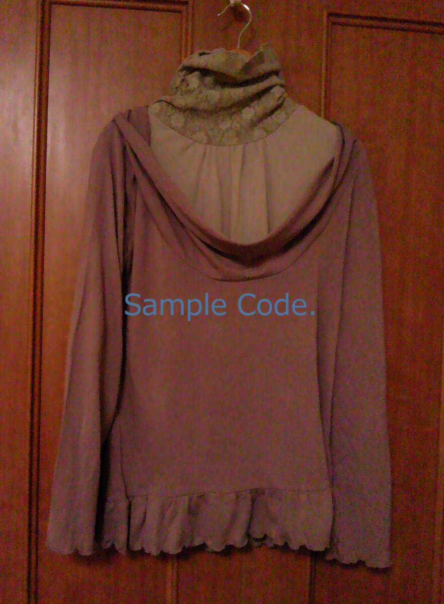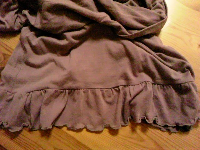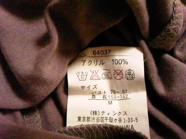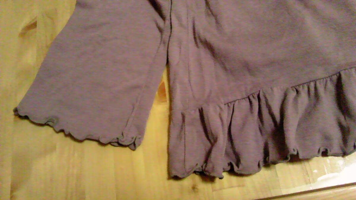 薄いアクリル100%の生地、胸元ドレープ、裾フリル、フレアスリーブ