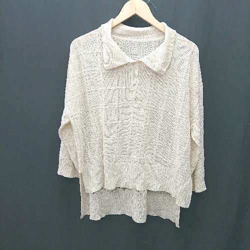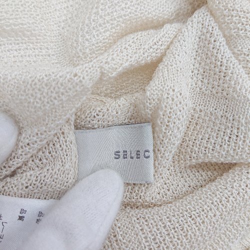 ◇ select MOCA セレクト モカ シアー 透け感 襟付き 七分袖 カットソー サイズF ベージュ レディース E