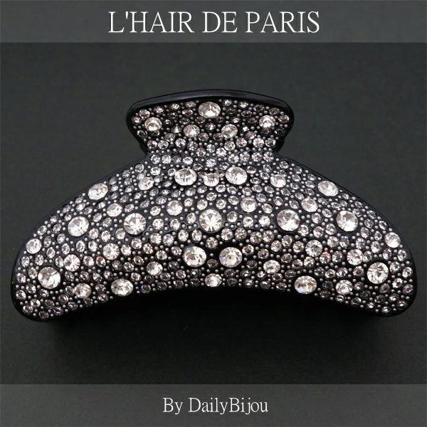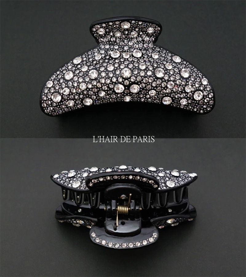 ★限定3★豪華★全面スワロフスキー★BIG大クリスタルヘアクリップ★ブラックCR★バンスクリップ 大きい 大き目 髪留め髪飾り 新品未使用