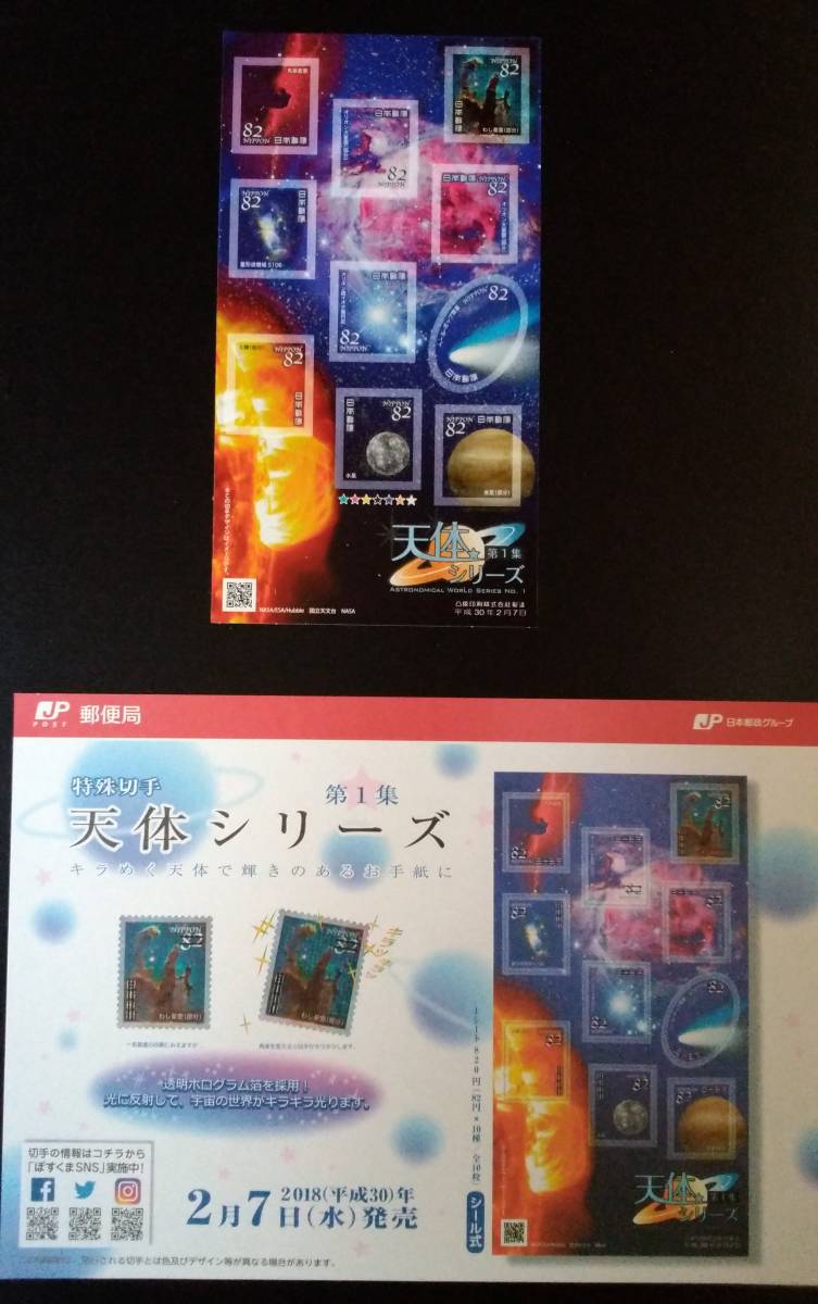 天体シリーズ第1集グリーティング切手 特殊切手 82円切手シール式シート+解説書 になります。