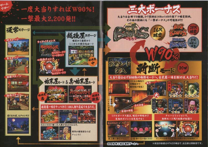 平和(HEIWA)の2010年導入のパチンコ台「CR江戸の始末屋-最強新日烈伝-」の公式ゲームガイドです。
