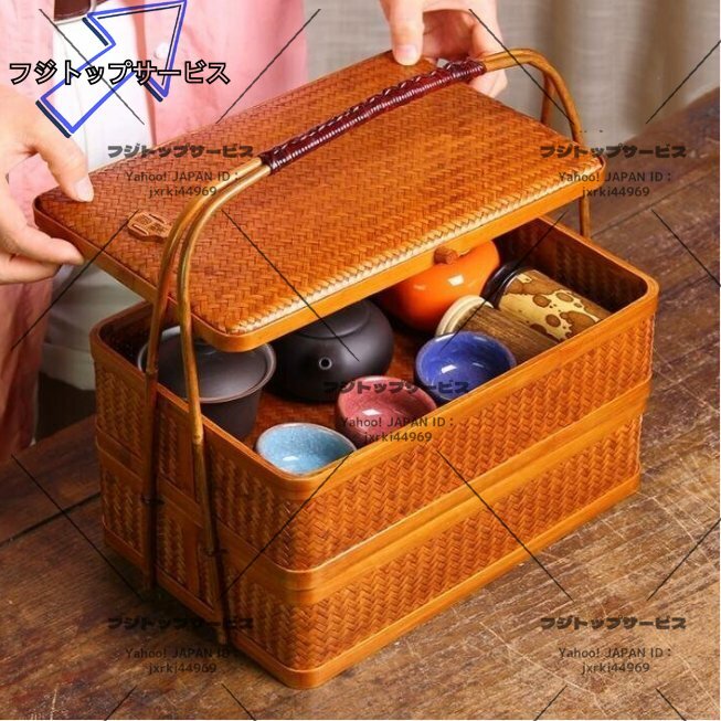 極上品★2層★茶道具 飯盒★職人手作 竹製 手作 茶器 收納 漆器 茶盒 茶箱