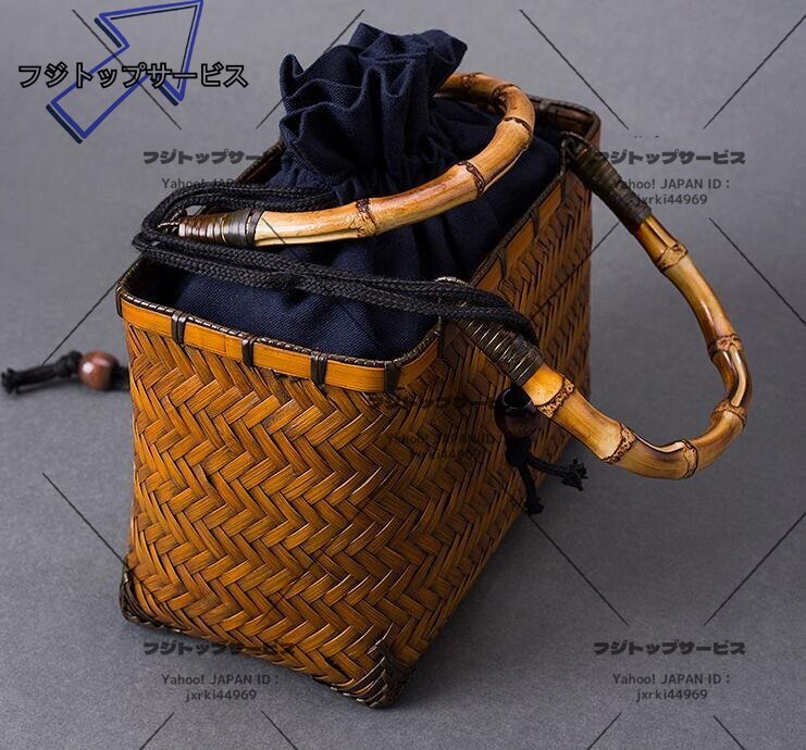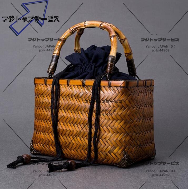 人気新品★竹バスケット 収納かご おしゃれ竹籠 編み 取っ手 持ち手  手作りトートバスケット