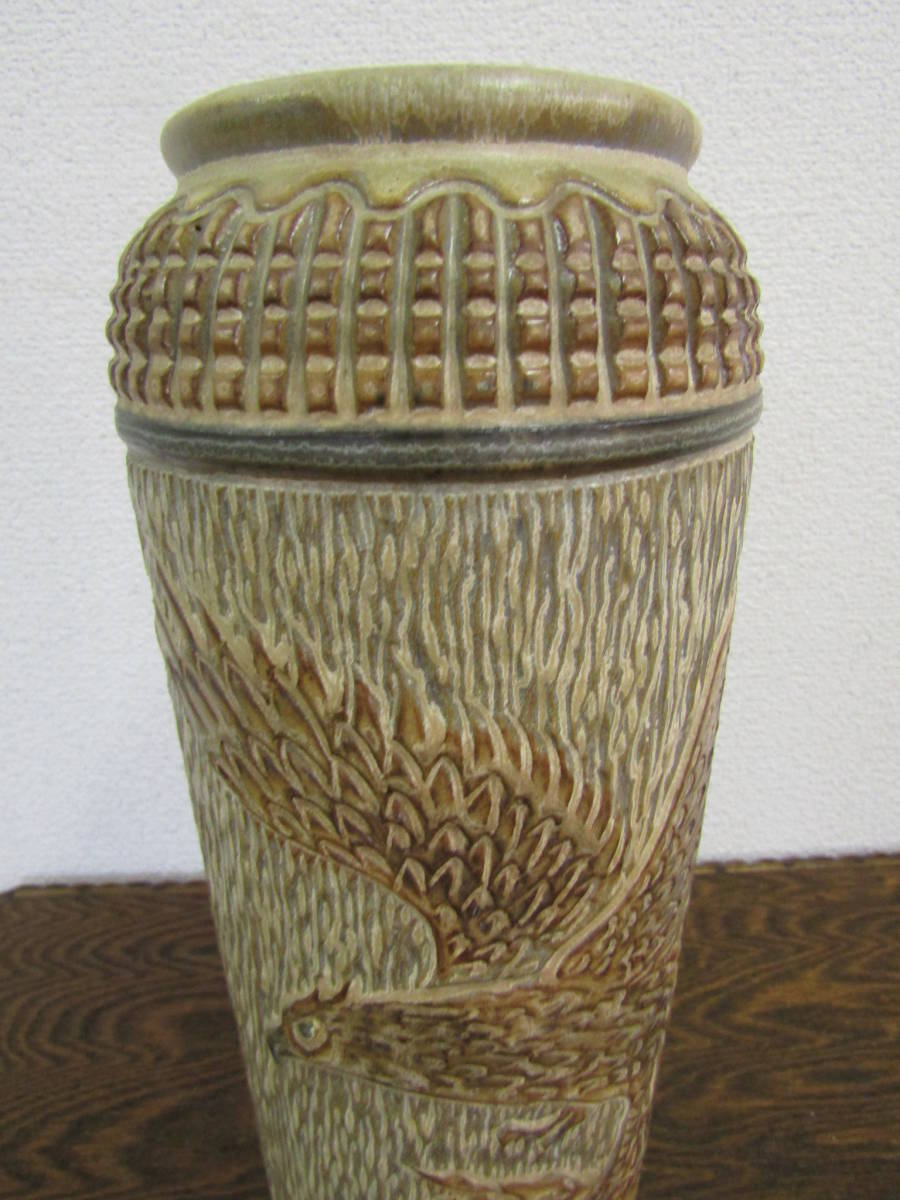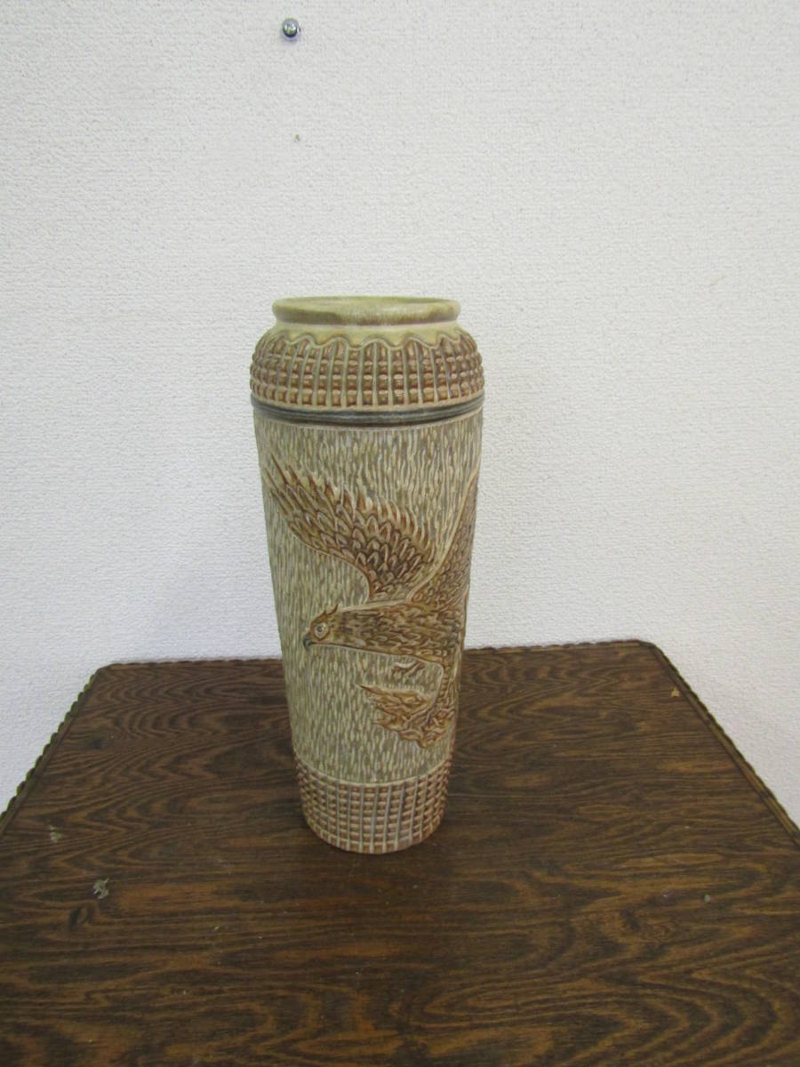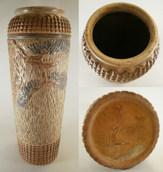 ■直山作 花瓶■(直径約115mm,高さ約307mm) 松に鷹の柄の花瓶です。ヒビ、カケなどありません。 経年相応品ですので、その点充分ご理解の上ご入札お願い致します。 |