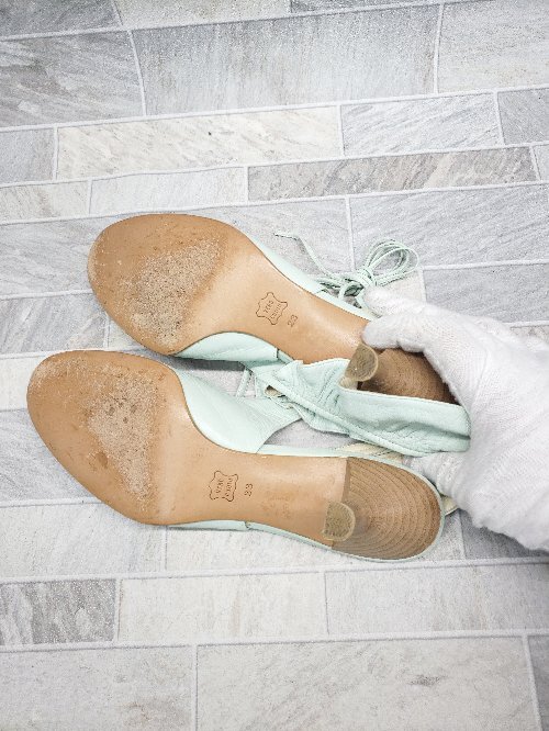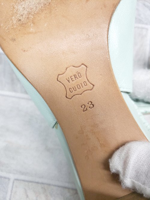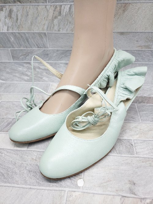 ◇ IDEAL SHAPE アイデアル シェイプ バックストラップ ヒール パンプス サイズ23.0cm ミントグリーン レディース P