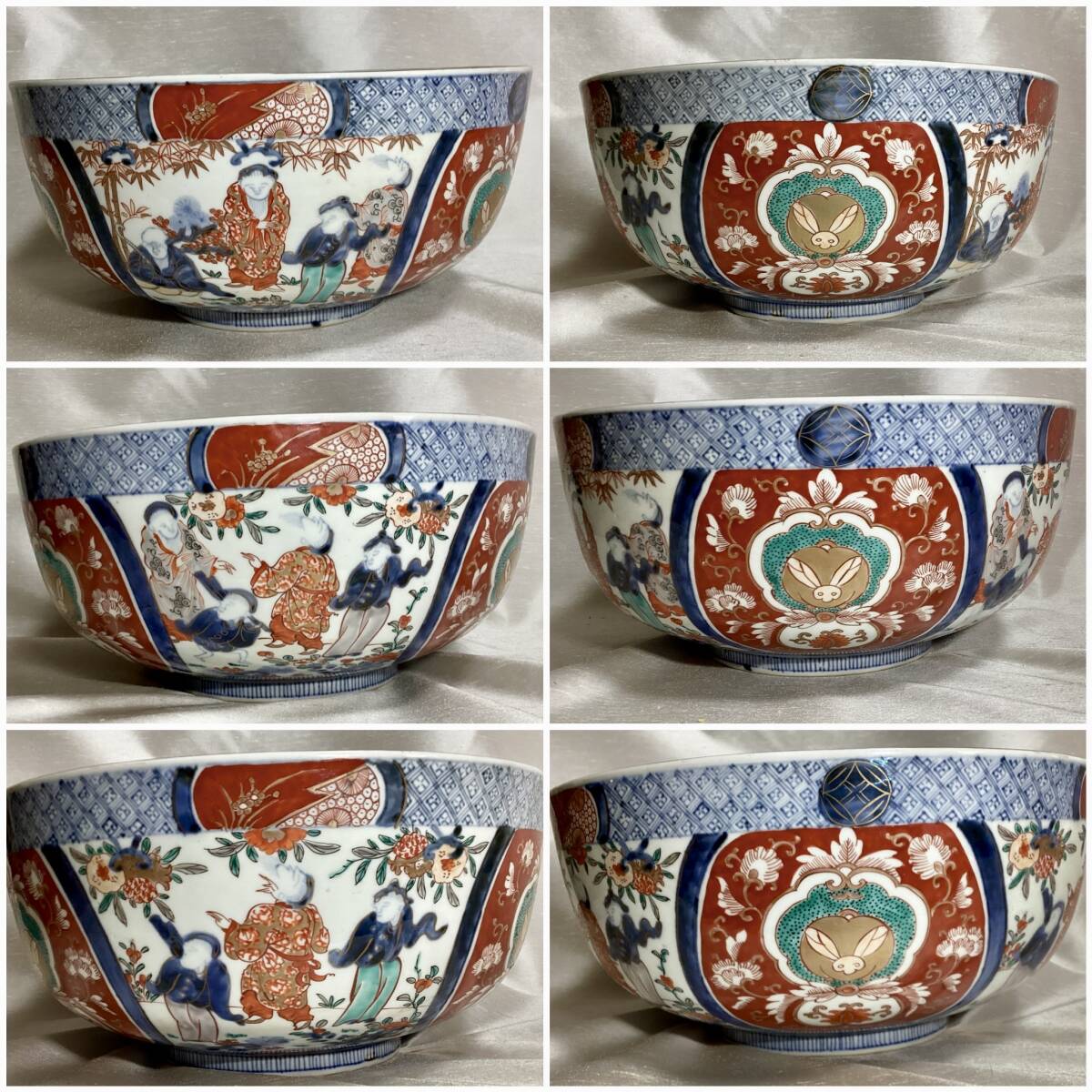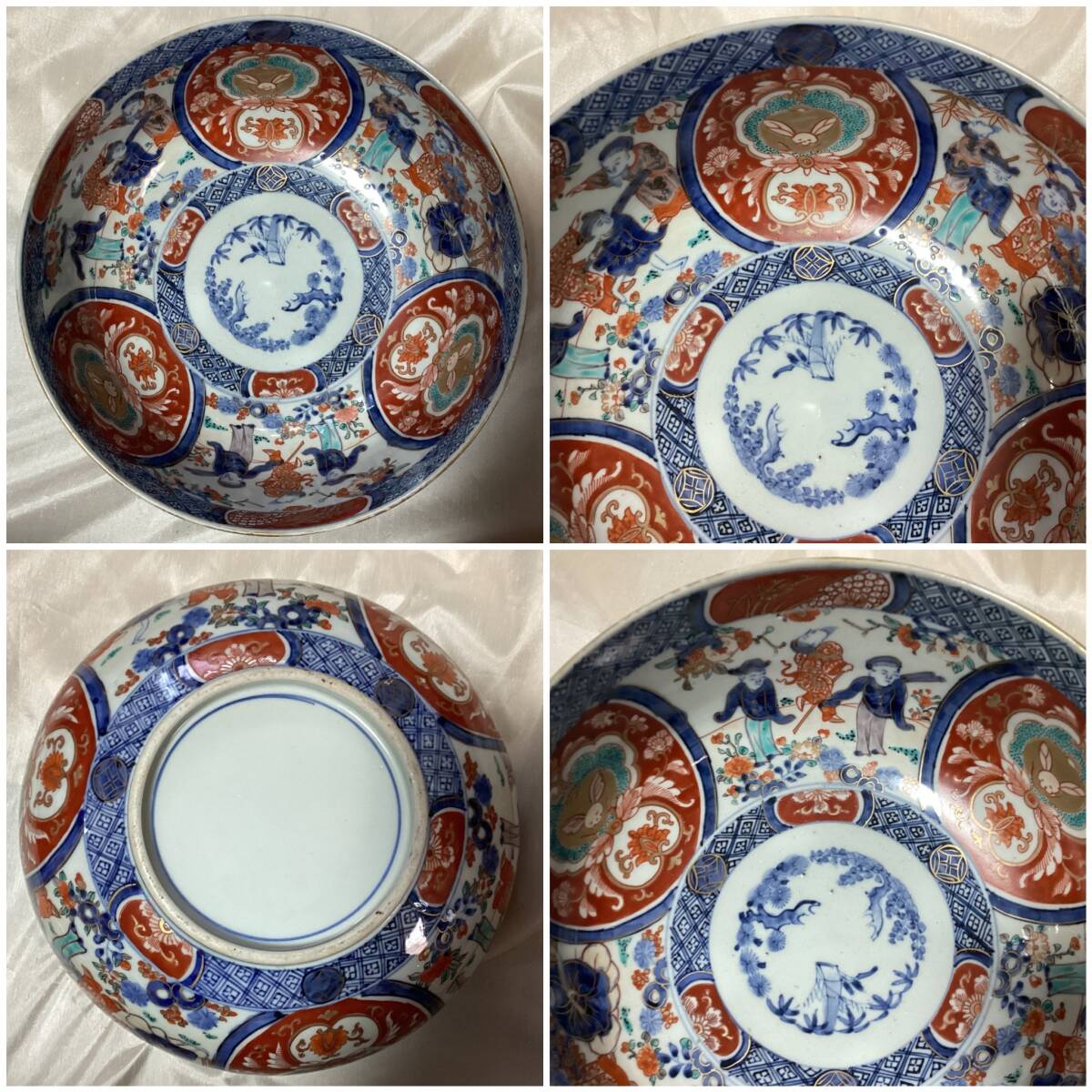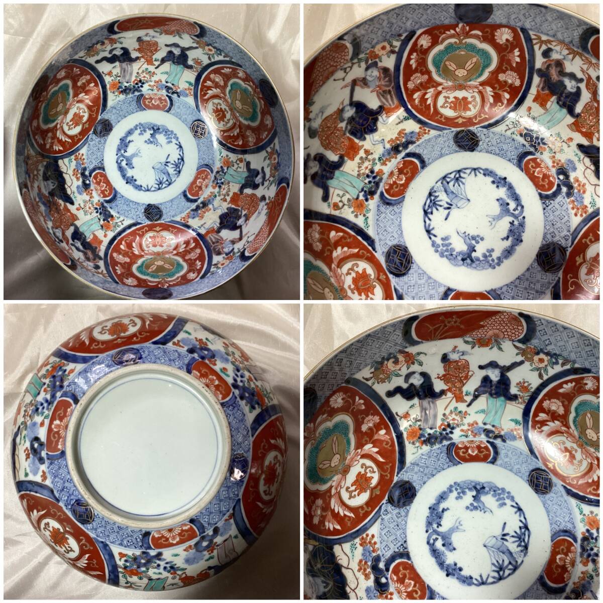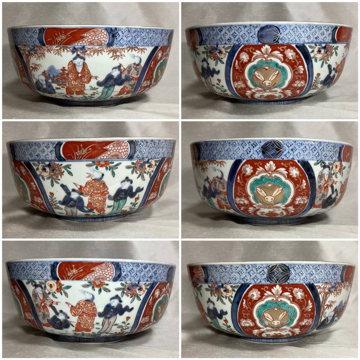 旧家の初だし 伊万里三重鉢 色絵金蘭手 阿蘭陀人と真向兎の図 櫛高台 鍋島? 幕末〜明治