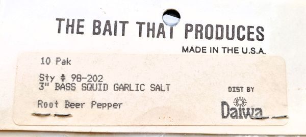 No.1166★ ダイワ 【 新品 廃番品 】 オールド ★ ガーリック ★ フィッシン ワーム ★ BASS SQUID ★10本★検⇒ 希少 おすすめカラー