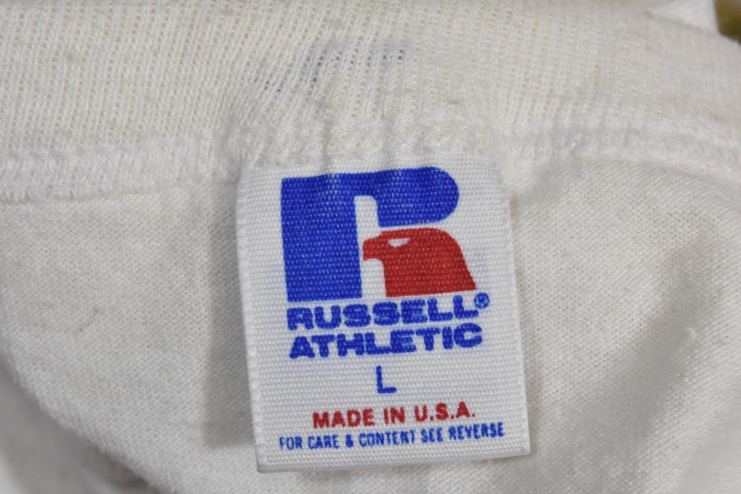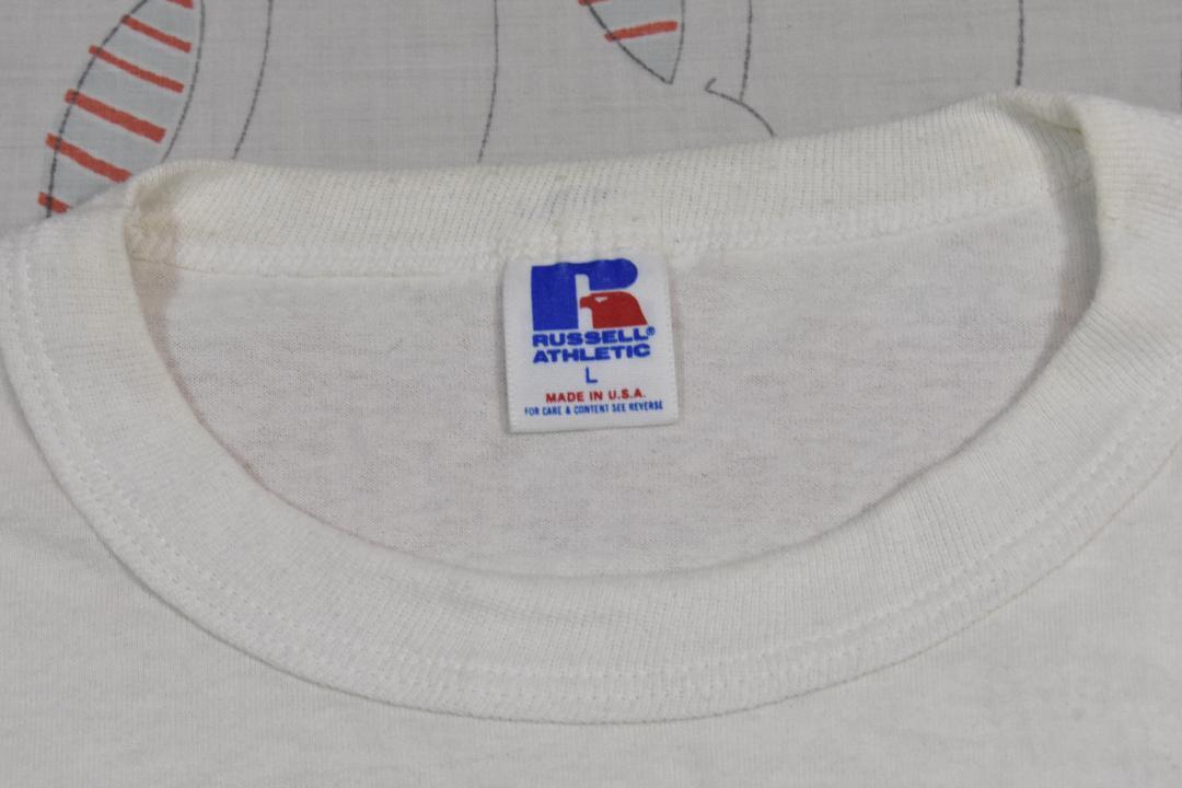 MADE IN USA 表記サイズ L 実寸 肩幅約49cm 袖丈約23cm 身幅約51cm 着丈約67cm シングルステッチ ■1990年代頃のオリジナルで、多少の使用感はありますが、大きなダメージなく、現在は生産されていないアメリカ製のモデルです。
