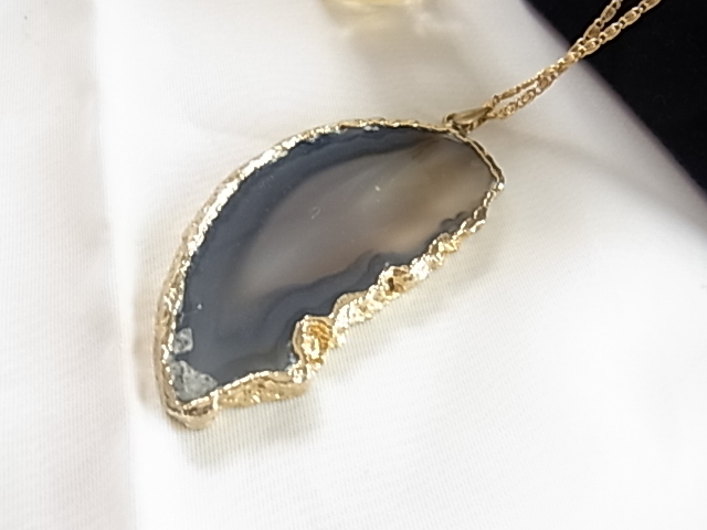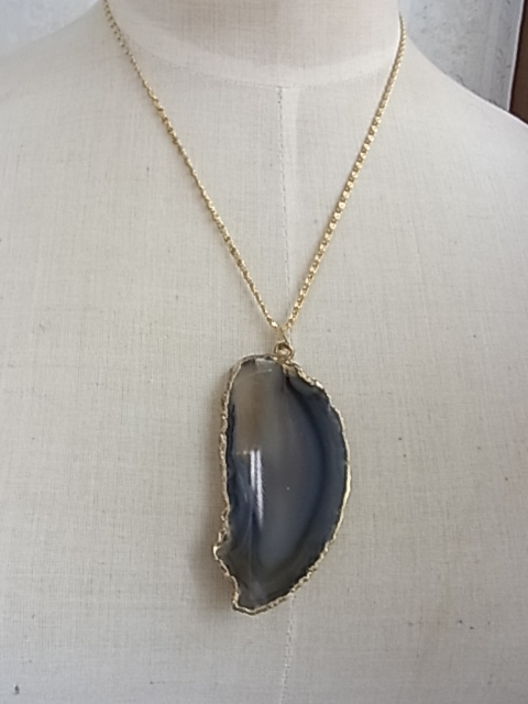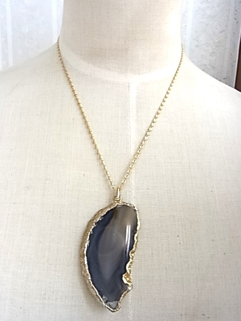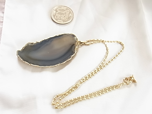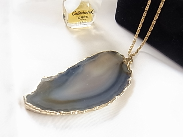 ビンテージ/ヴィンテージ 大き目のトップが存在感 あおかちいろとおいみどりトーンのグラデーション 素材不明 ネックレス☆☆