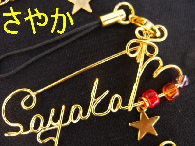 手作り針金細工☆名前ネームストラップ【さなえ/さやか/さゆり/さら/しおり/しずか/しのぶ/じゅん/じゅんこ】未使用/送料無料/ハンドメイド