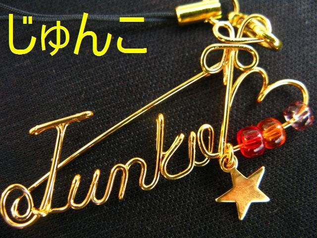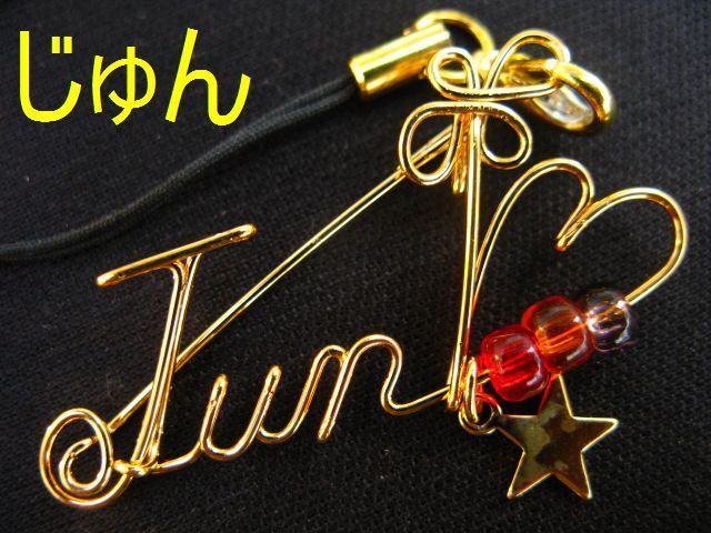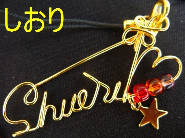 ■0.9mmの真鍮製針金を曲げて作った物に、金メッキを施した名前のストラップです。