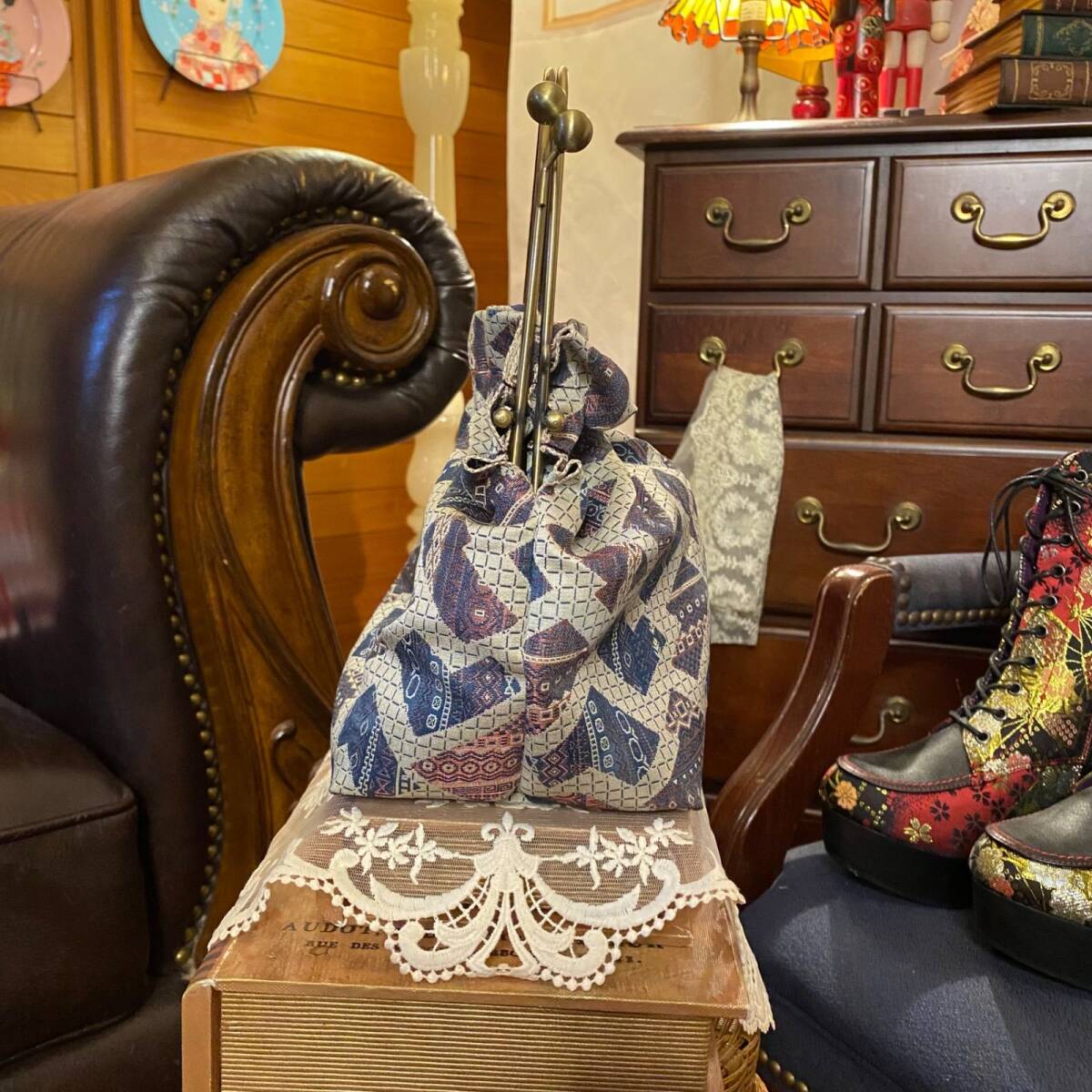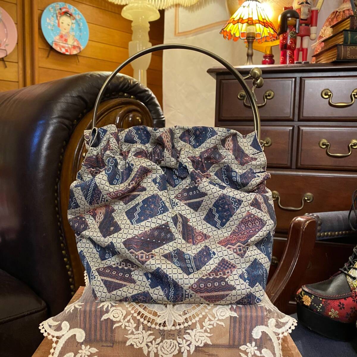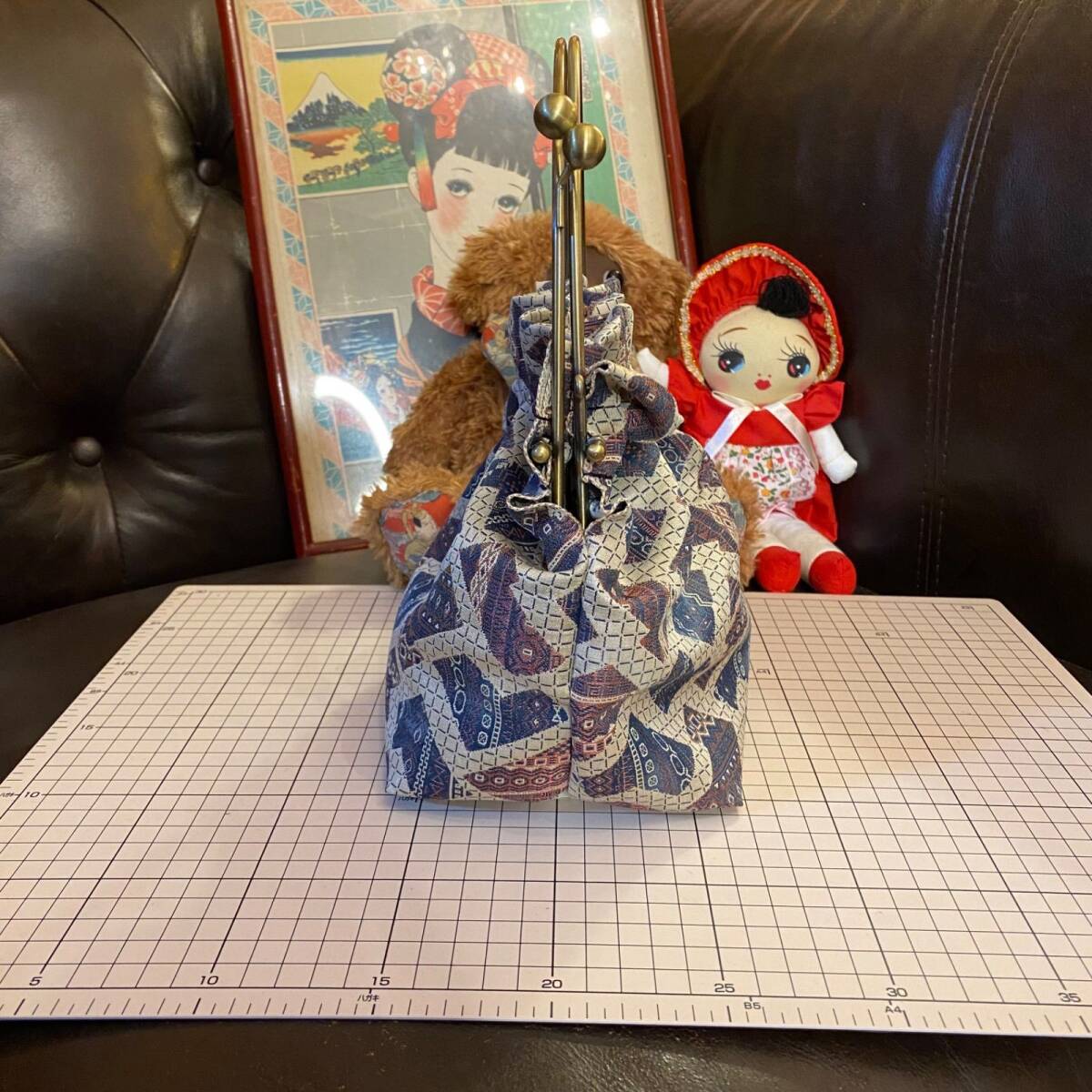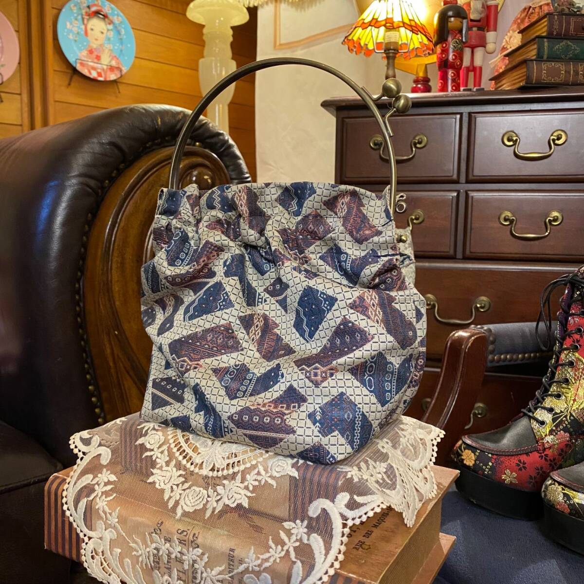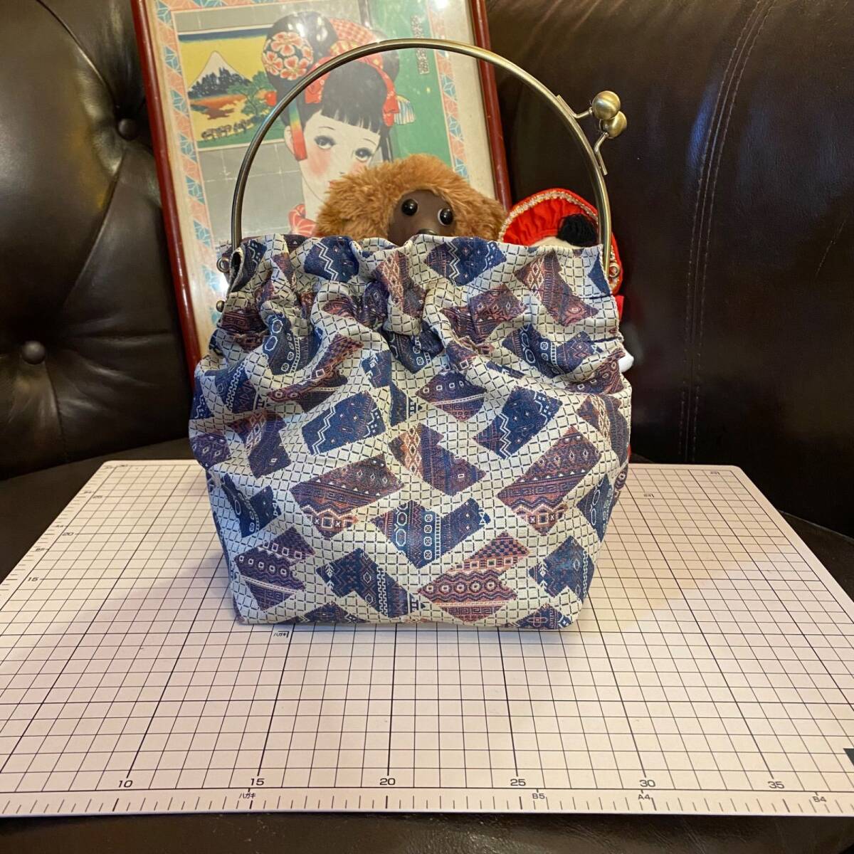 【 八寸名古屋帯リメイク ハンドメイド ハンドバッグ ハンドバック がま口 ガマ口 ベンリー 口金 レトロ クラシカル あ‐7】