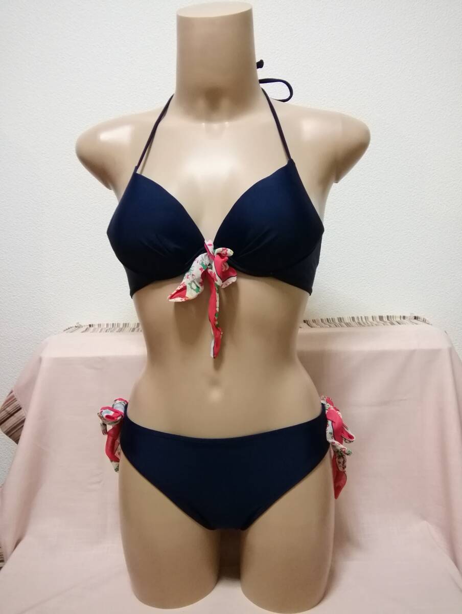 ●未使用保管品 QHHアジアン風デザインプルオーバー付きワイヤービキニ サイズM