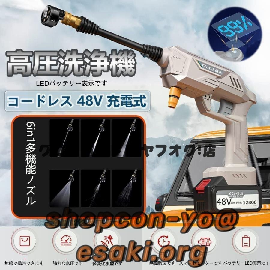 超人気 充電式 高圧洗浄機 48V コードレス 5MPa最大吐出圧力 水噴射量5.2L/min 6種類噴射モード 6-in-1ノズル洗車 バッテリー付き S620