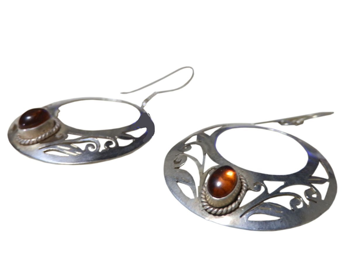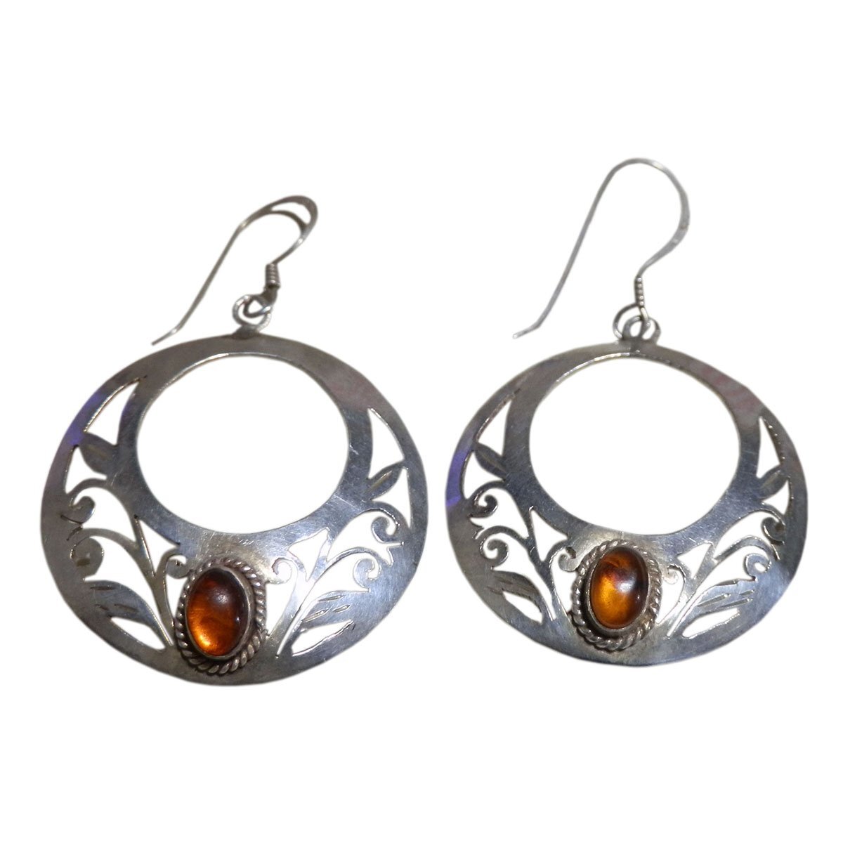 ■☆アジアン雑貨 天燃石シルバーピアス 琥珀ピアス(P-44)