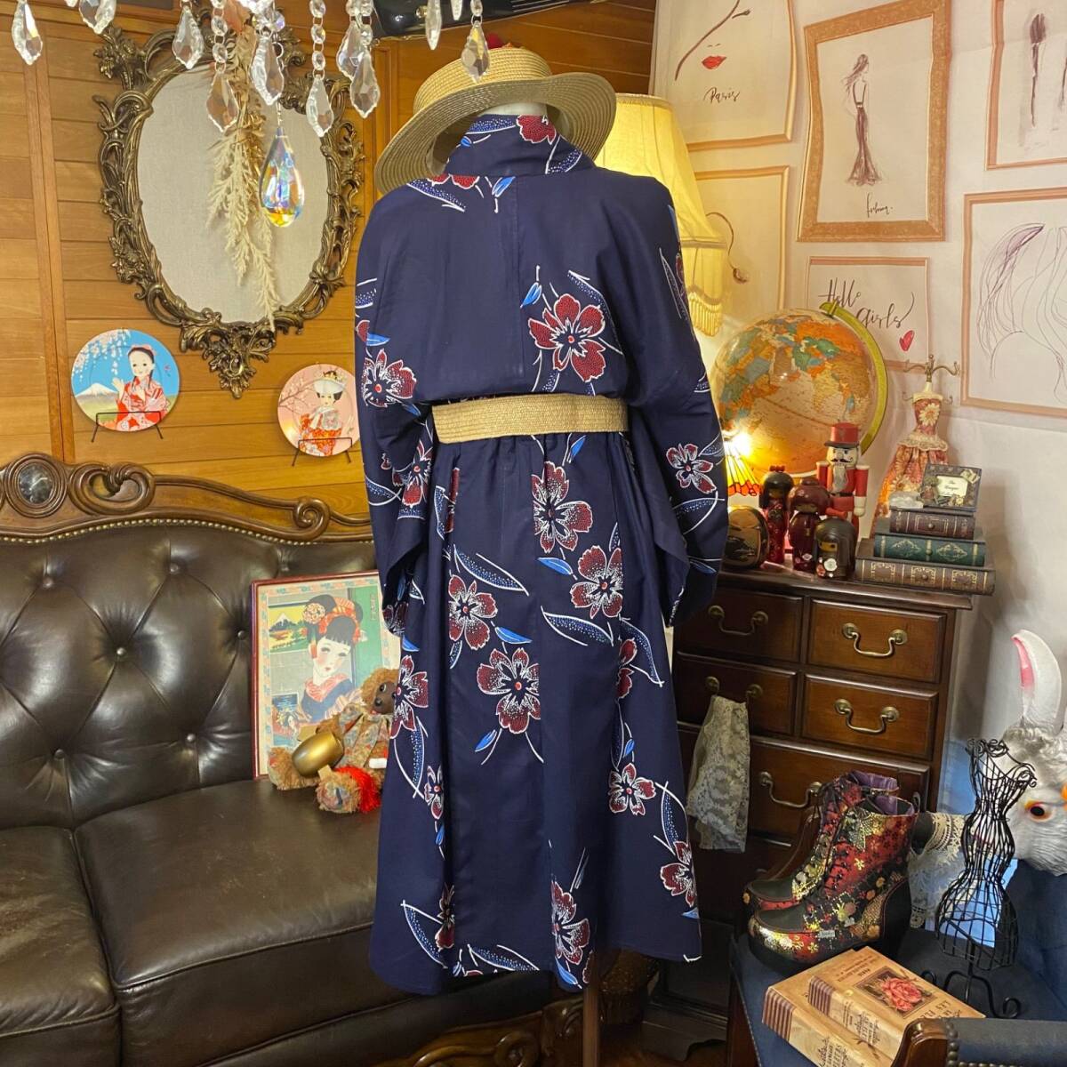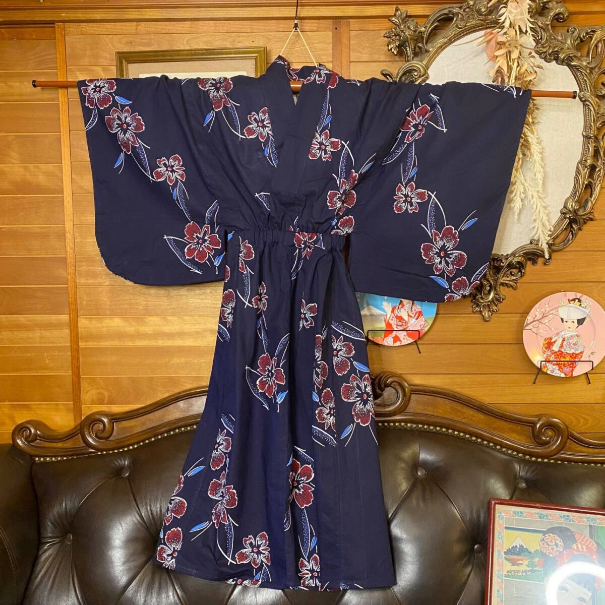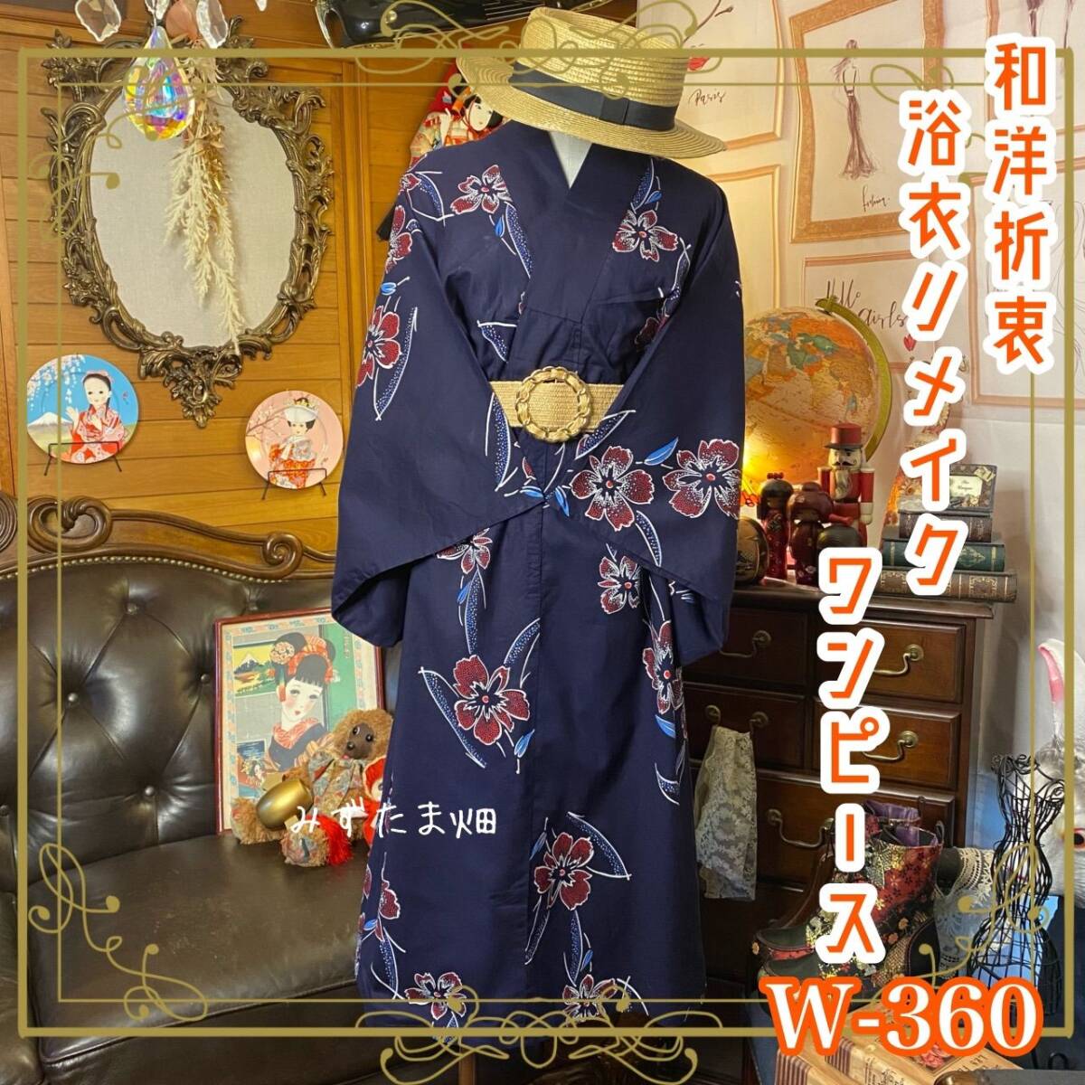 【 和洋折衷 浴衣 リメイク ワンピース ドレス レトロ 古着 和 モダン かわいいお花柄 W-360 】
