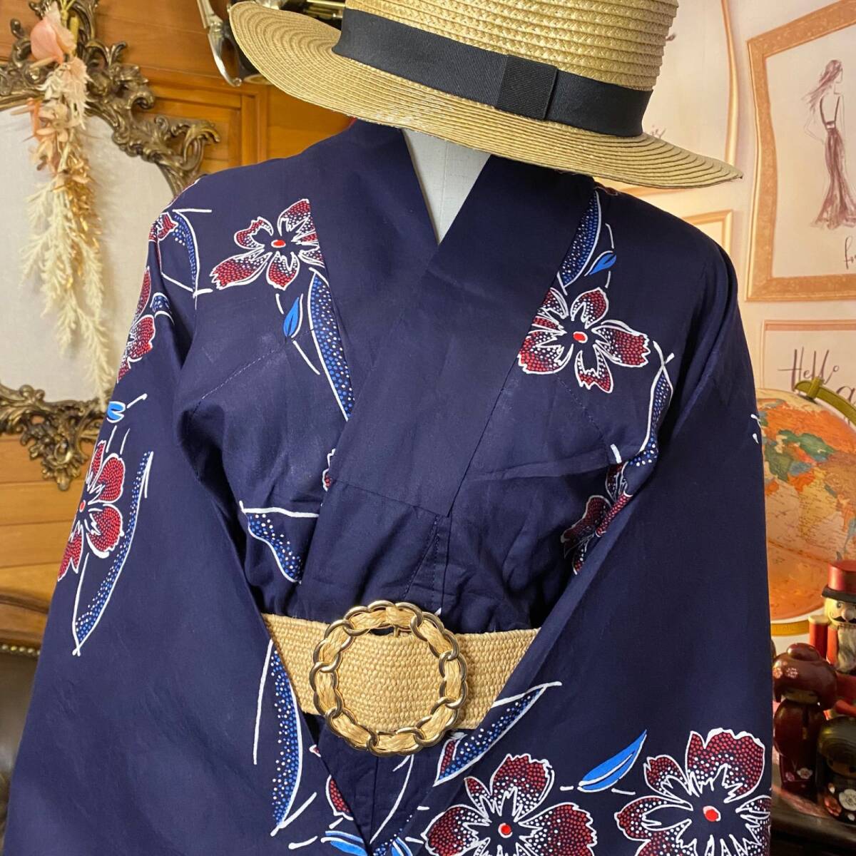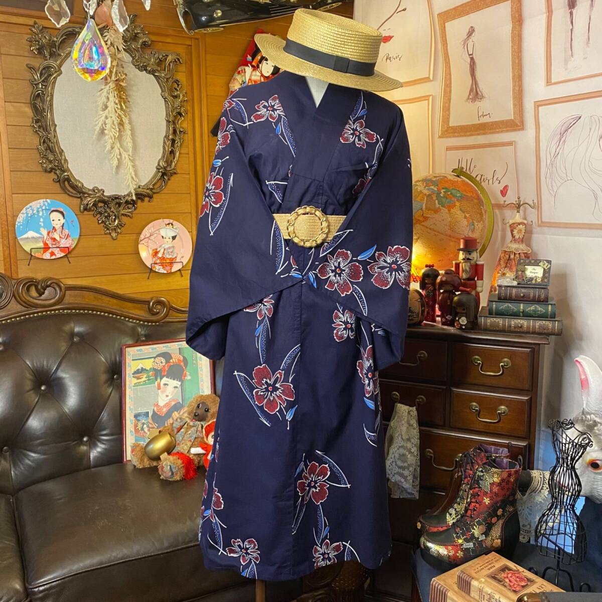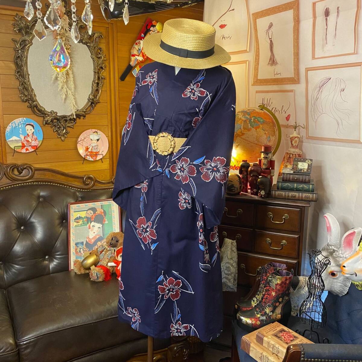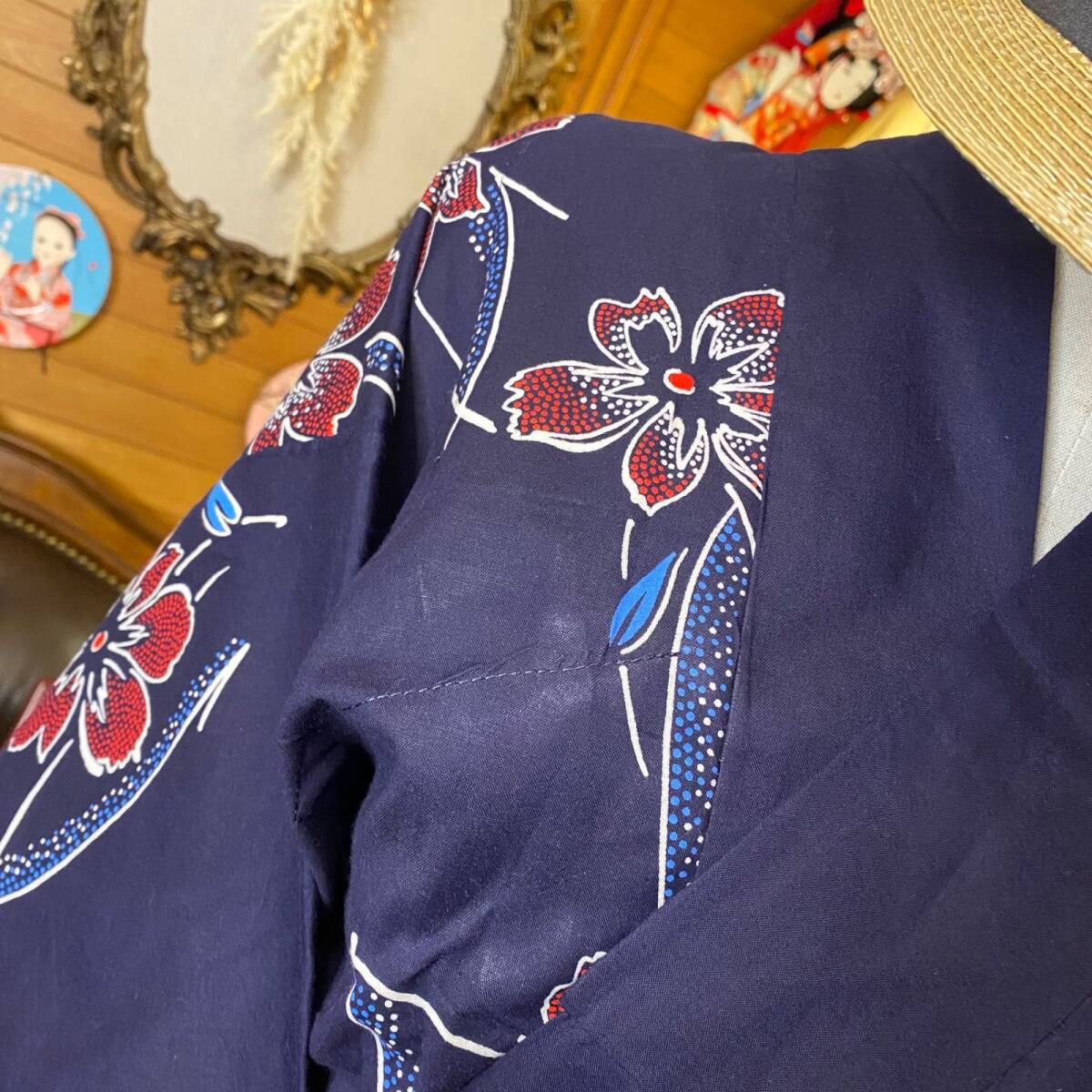 【 和洋折衷 浴衣 リメイク ワンピース ドレス レトロ 古着 和 モダン かわいいお花柄 W-360 】
