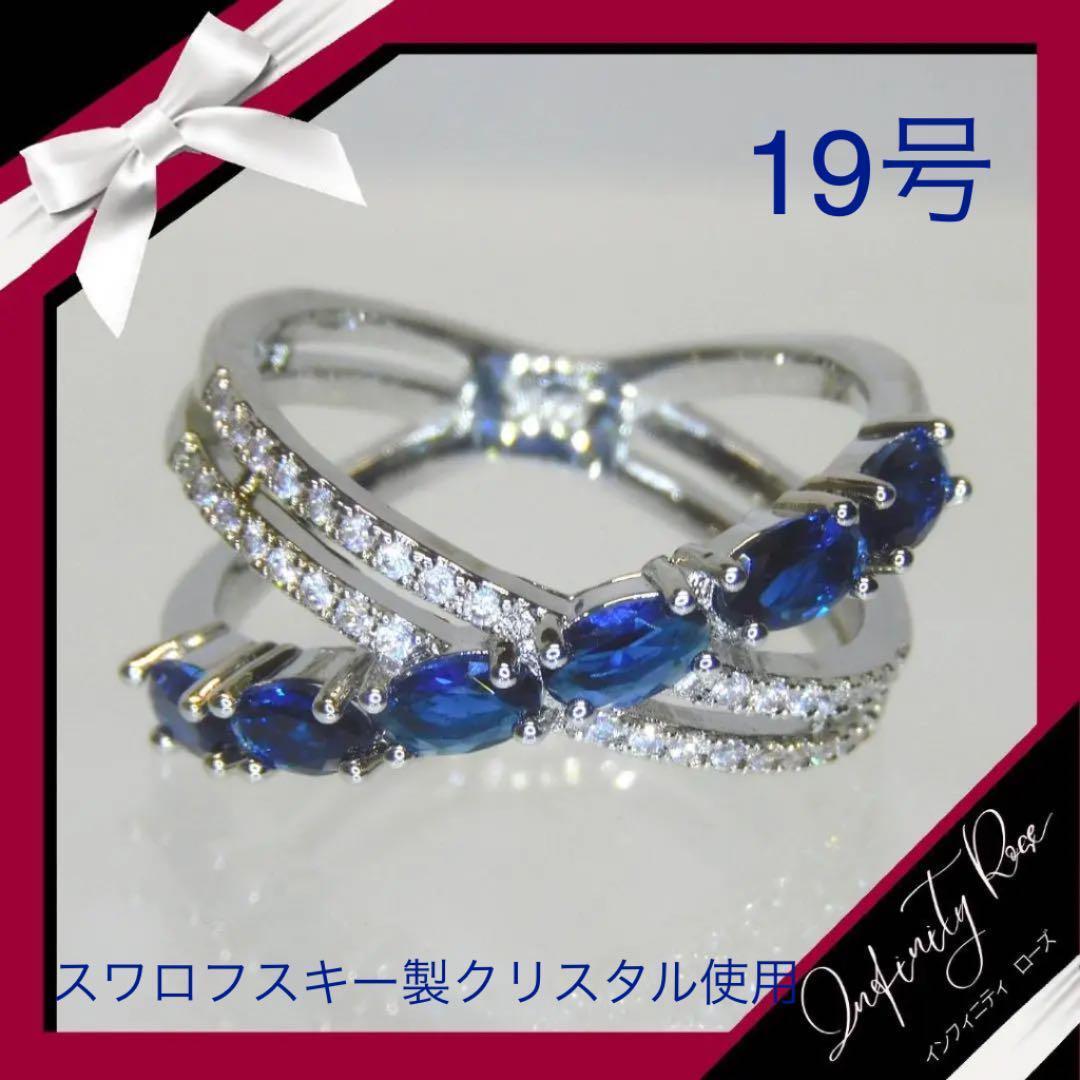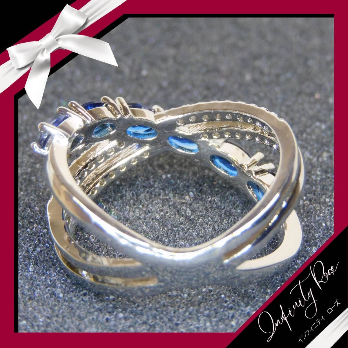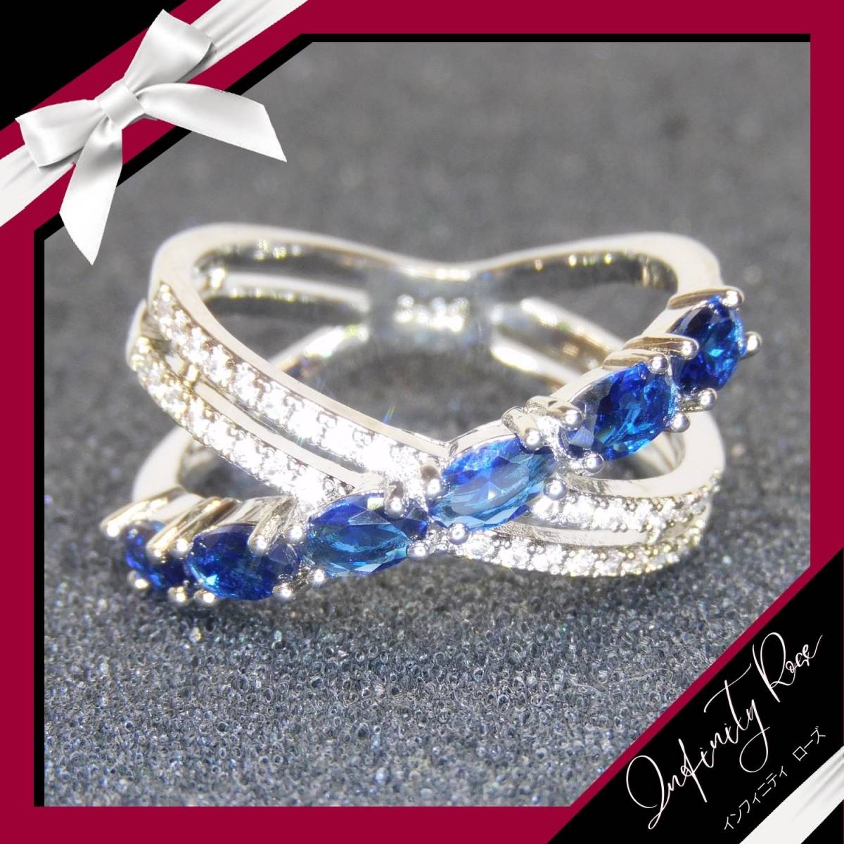 (1207)19号 ブルー×クリアクロス高価な爪留めリング 指輪
