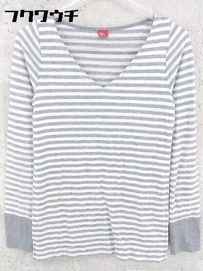 ◇ DOUBLE STANDARD CLOTHING ボーダー 長袖 カットソー サイズF オフホワイト グレー レディース