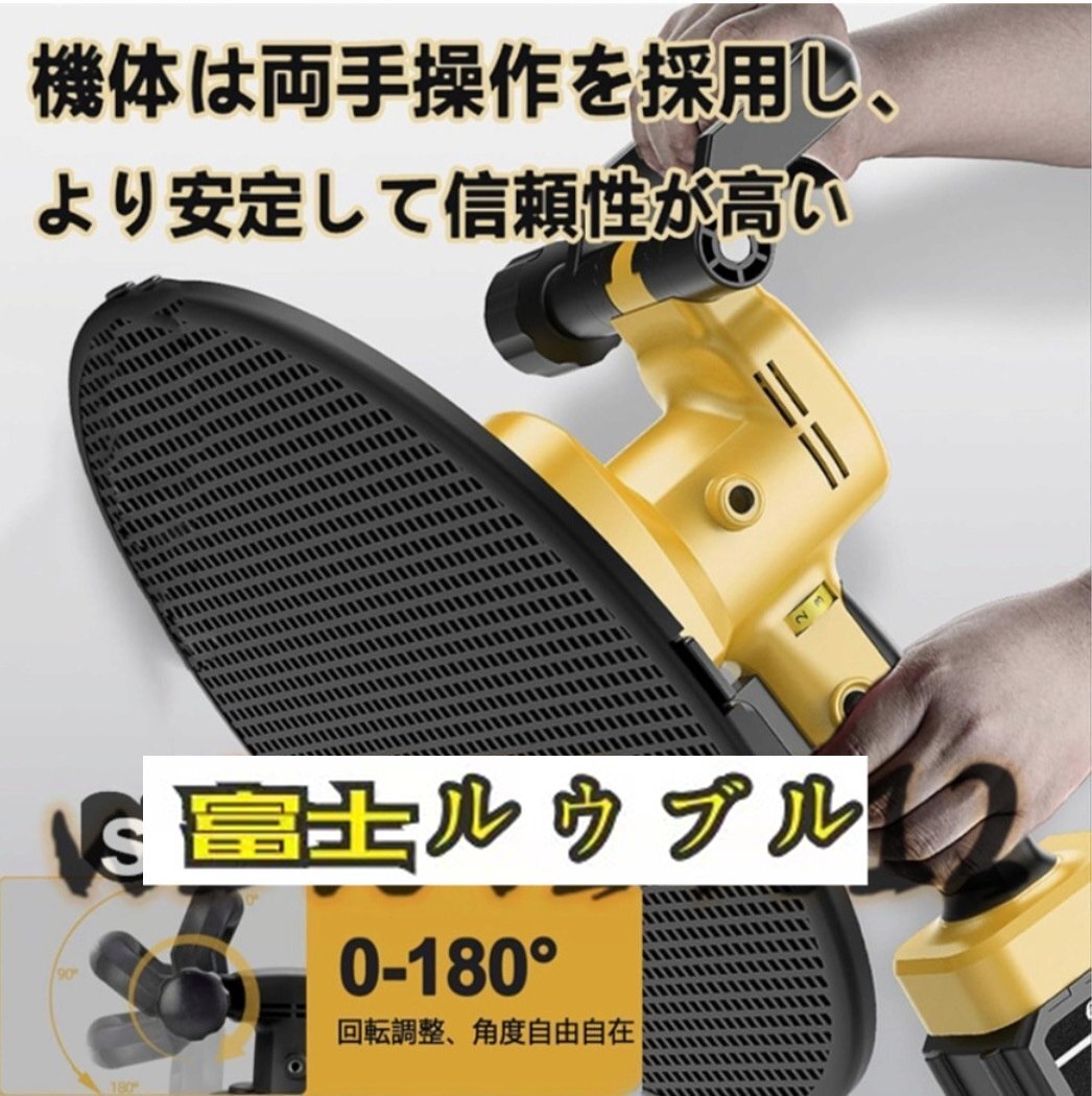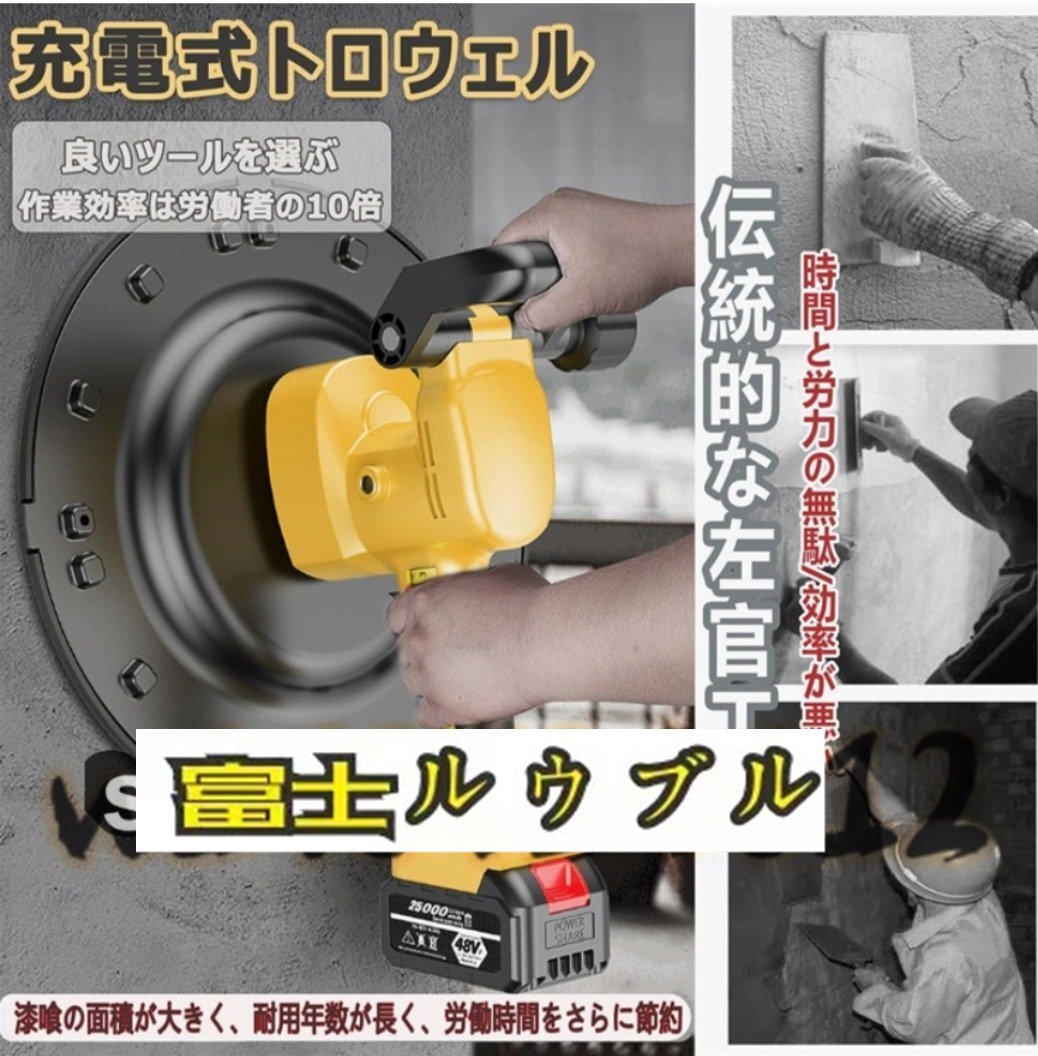 【6速調整可能】この電動左官マシンは1~6段階の速度調整が可能で、速度を自由に制御でき、さまざまな環境に適しています。異なる作業条件に応じて異なる速度を選択し、自由な制御、より安全より便利な構築。 【大容量バッテリー】大容量バッテリーを搭載したワイヤレスリチウムバッテリーは、バッテリー寿命が長く、車と同型のリチウム電池、バッテリー寿命は従来のそれより30%長くなります。施工がしやすく、長く使えます。効率的な熱放散、回転熱放散技術、多孔質熱放散により、モーターを焼損から保護します。低温環境下でも使用可能です。電池寿命は通常の電池に比べて数倍長持ちします。市場で販売されているバッテリーよりも長寿命で高効率です。 【全銅強力モーター】強力なパワー、メンテナンスフリー、均一な速度、高効率、人間の労働を減らすことができる、効率を向上させる。 【作業効率の向上】充電式トロウェルモルタルやセメントの凹凸を簡単に取り除き、広い面積でコンクリートの床を平らにすることができます。作業効率をスピードアップし、時間と労力を節約し、作業結果の品質を向上させます。この製品は、他の研磨機のさまざまな直径 38cm アクセサリーにも適しています。 【幅広い用途】多目的、各種中粘度液の混合に適し、セメント、コンクリート、グラウト、泥、ペンキ、モルタルなどを含む。 乾式壁研磨機は、手が届きにくい外壁、廊下、接着剤、パリの漆喰など、内外壁、天井、四面壁、天井の滑らかで粗い表面に適しています。 建設作業、プロの建設チーム、または民家の改築に役立ちます。