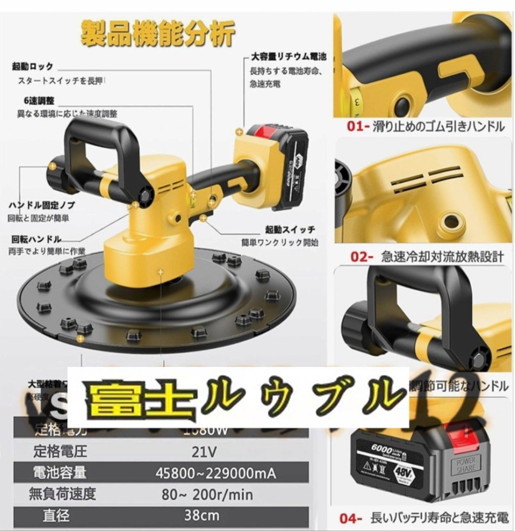 充電式トロウェル 電動 電動サンダー 6速調整 土間施工 ムラ取り コンクリート研磨機 小型 円盤 不陸調整 コンクリート均し 電池2個