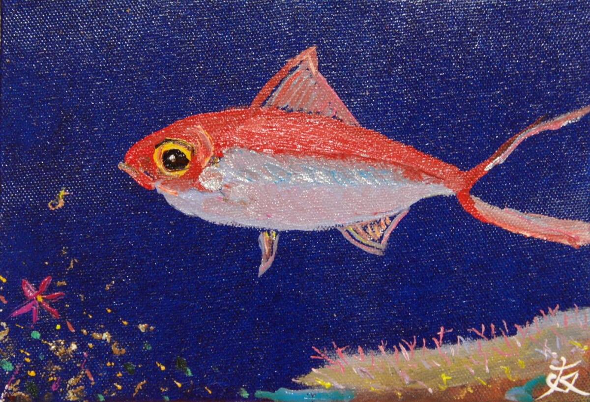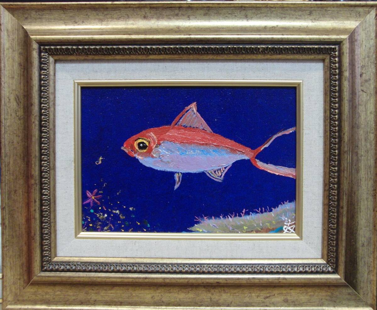 ≪国美協≫TOMOYUKI・友之、『金目鯛』、油彩画、SM号:22,7cm×15,8cm、、油絵一点物、新品高級油彩額付、直筆サイン・真作保証付