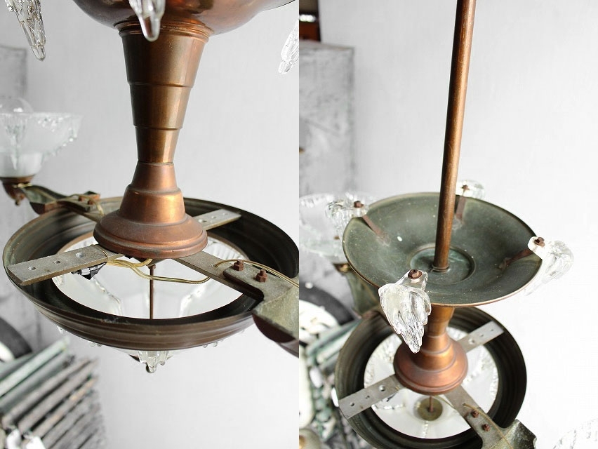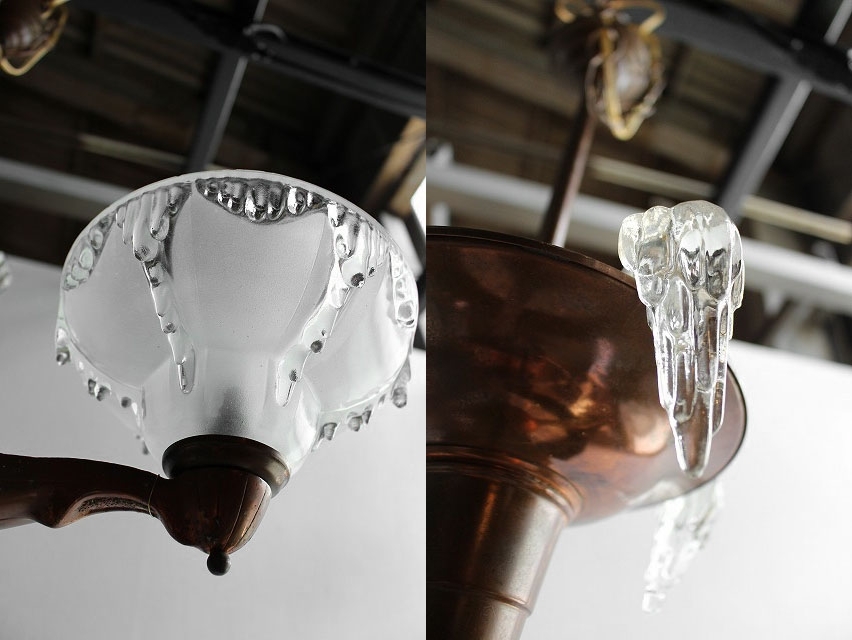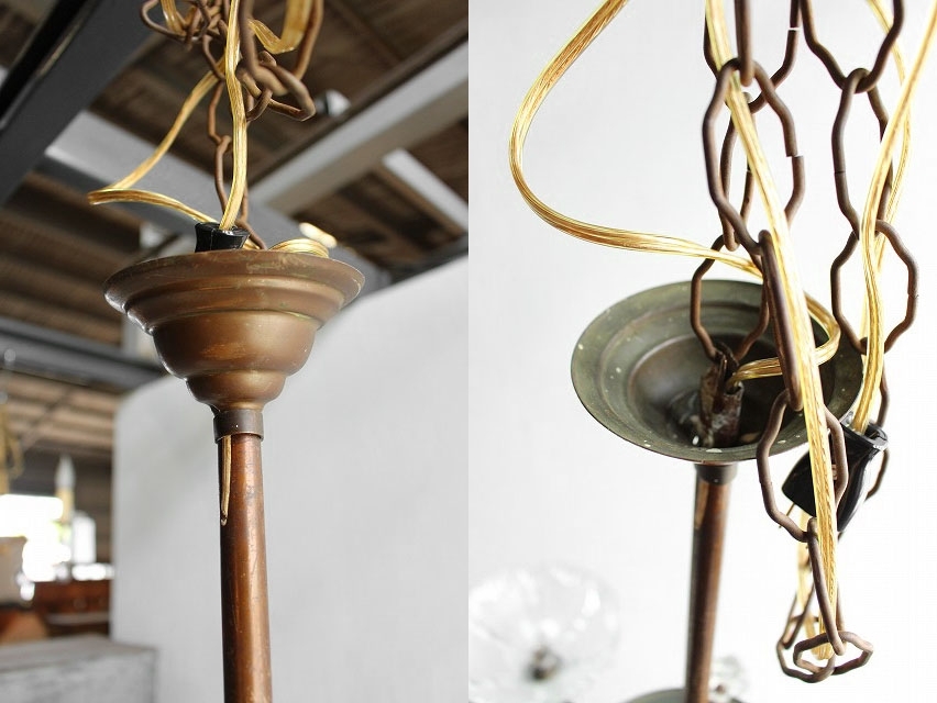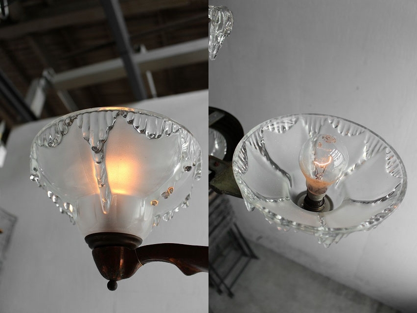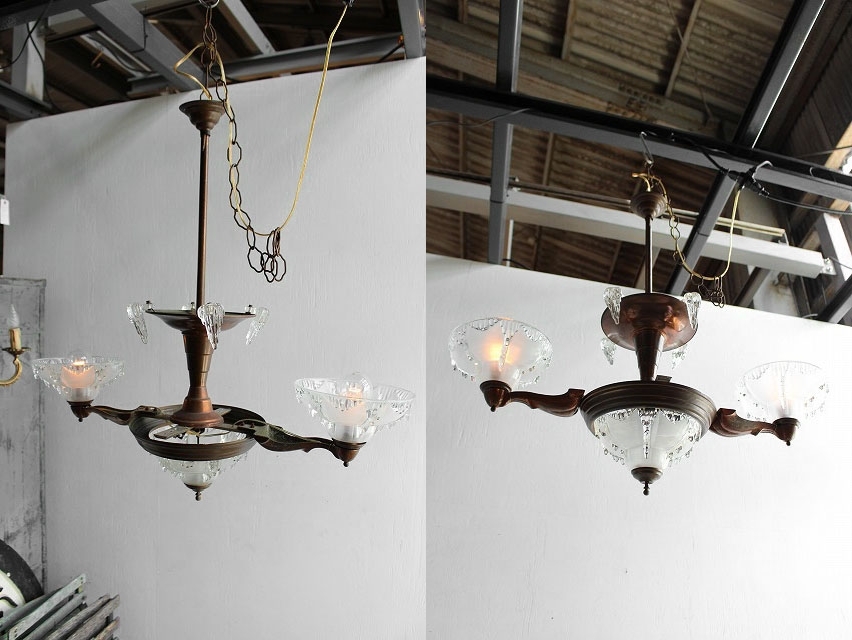 商品説明 岡山STAGEから出品します。フランスで買い付けましたアンティークのEZANガラスシェード アールデコ吊り下げランプです。ガラスシェードはEZAN製で氷が溶け滴る様子がモチーフになっておりとてもおしゃれなランプです。イーザンは、1930年頃から第二次世界大戦中までフランス・パリ郊外に出店していた美術商で、アールデコの意匠が強く感じられるパートドヴェールとオパールセントガラスの照明や贈答用の食器を始め、様々なガラス工芸品を当時のアールデコ工芸家たちに注文。ルネ・ラリックと並んで活躍したガラス工芸家のマリウス・エルンスト・サビーノもイーザンにガラス製品を納品していた記録が残されています。経年によるカッパーの風合いとデザインフォルムがとてもおしゃれで、光りを灯すと雰囲気良くお部屋を照らします。コード、コンセントプラグは雰囲気を損なわぬよう新しいものに交換してあります。また電球は付属しませんが市販のB22口径が2つのタイプですのでご用意ください。もともとは4灯のランプですが2灯に加工されております。状態ですが、錆等の金属特有の劣化、小傷や歪み、擦れや汚れ等の使用感はありますが雰囲気を損なうような目立つダメージもなく問題ない状態かと思います。ただあくまでアンティークになりますのでご理解いただける方のご購入をお願いします。 サイズ 高さ約80cm(チェーン取り付け金具含む)、横幅約78cm、奥行き約26.4cmになります。 発送方法 保障の利く佐川急便の元払い220cmサイズ料金で行います。 コメント もともとのチェーンが現状の長さのみになります。(約1m)コードの長さ調整にともなう別のチェーンに取り換える場合は1m当たり1,080円で調整させていただきます。コンセント式ですので別途735円でシーリング仕様への交換もいたしますのでお気軽にご相談ください。店頭でも販売しております。タッチの差で売り切れた場合はご了承下さい。よろしくお願いします。 STAGEホームページ https://www.stage-stage.com/ |