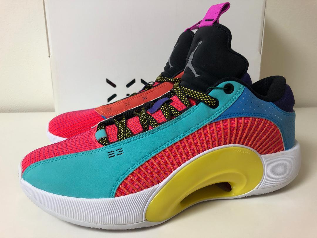 なかなか見かけないカラーです めちゃくちゃかっこいいですAIR JORDAN 35 LOW DS PF "REFLEXOLOGY" DJ2831-300 (ハイパージェイド/メタリックシルバー/マルチカラー)