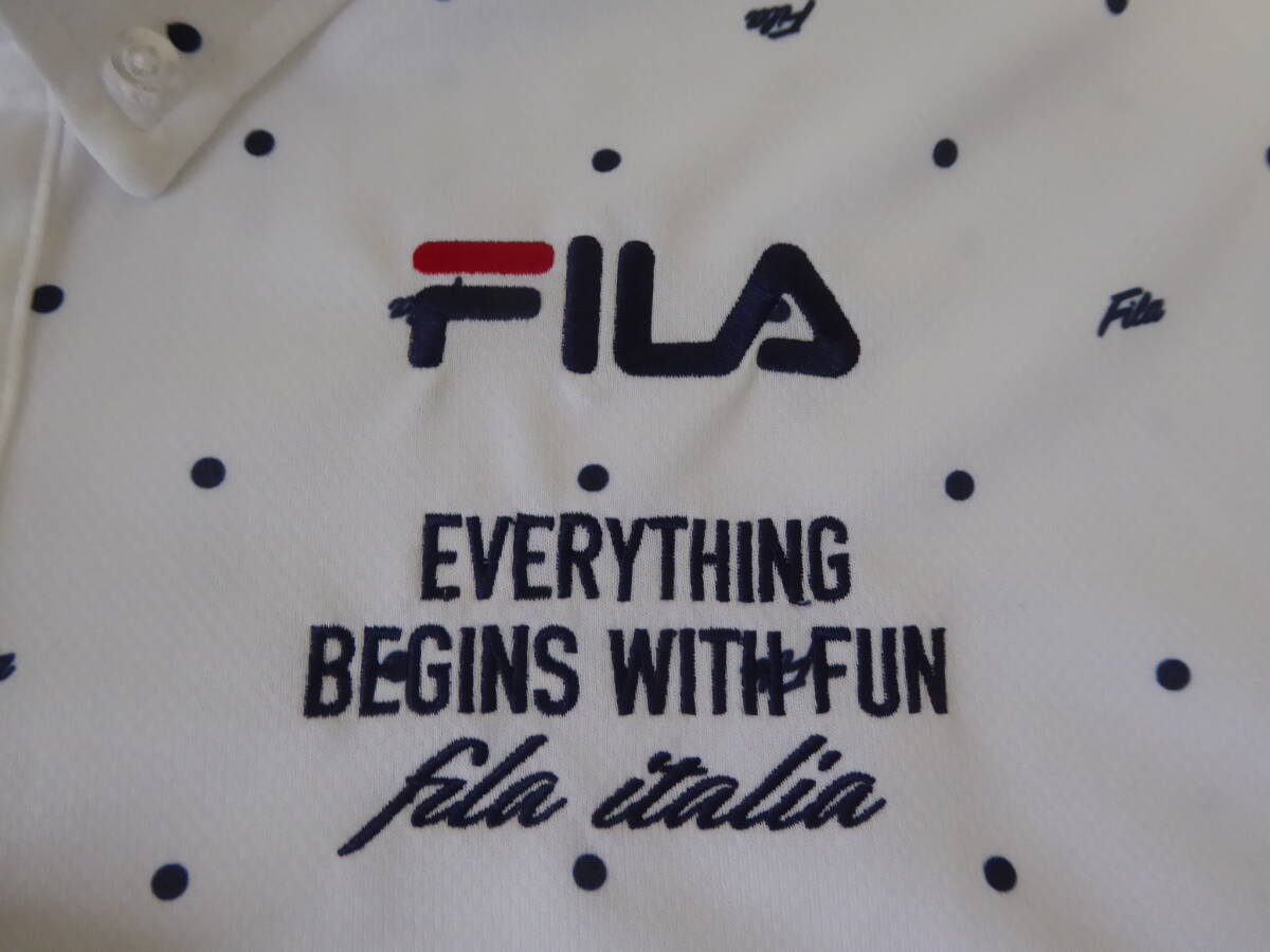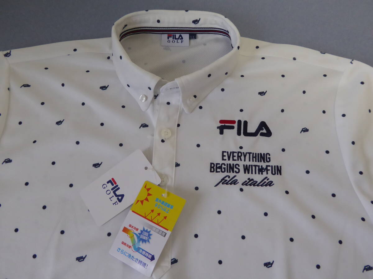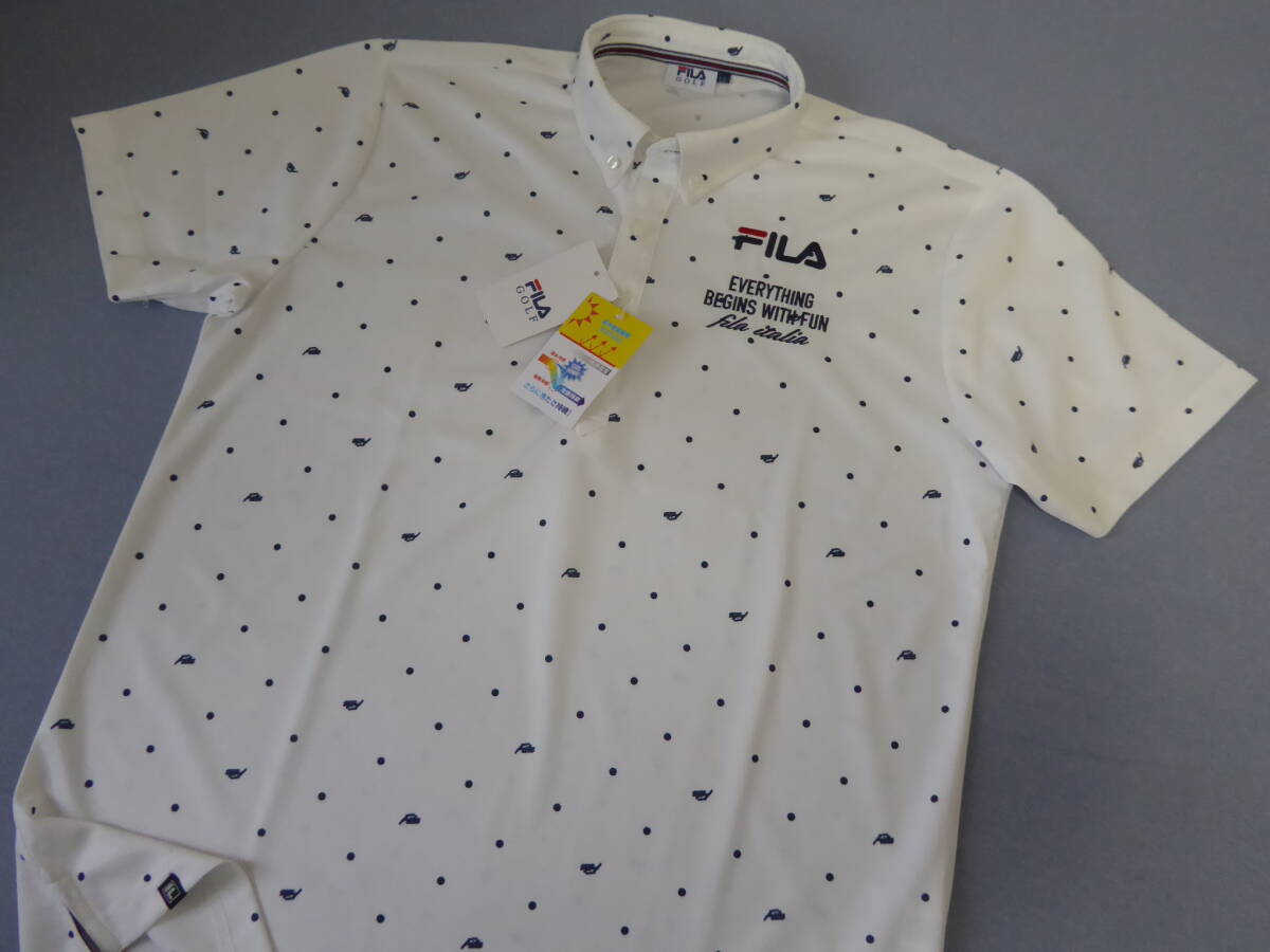 FILA GOLF フィラ ゴルフ UV対策 吸水冷感&保湿冷感 ストレッチ 飛び柄 ボタンダウン半袖ポロシャツ LL 白