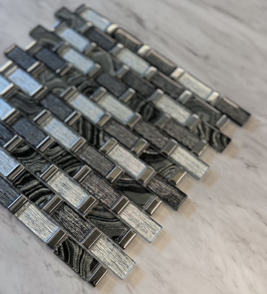 ガラスタイル グレー タイル ガラス 店舗 アクセント 高級 壁用 在庫有 DIY 異素材 建材 tile クリア 即納 激安 建築 キッチン メタル